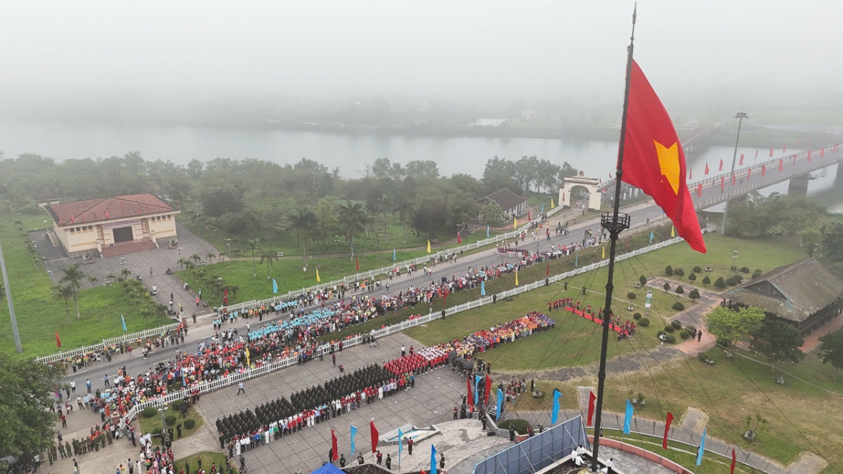 Trong không khí trang nghiêm, lá cờ Tổ quốc từ từ kéo lên trên cột cờ giới tuyến Hiền Lương – Bến Hải trong sự xúc động của hàng nghìn vận động viên, người dân và du khách. Tại buổi lễ, các đại biểu dành một phút mặc niệm tưởng nhớ Chủ tịch Hồ Chí Minh và những người con ưu tú của quê hương, đất nước đã hy sinh xương máu vì độc lập tự do của Tổ quốc.
