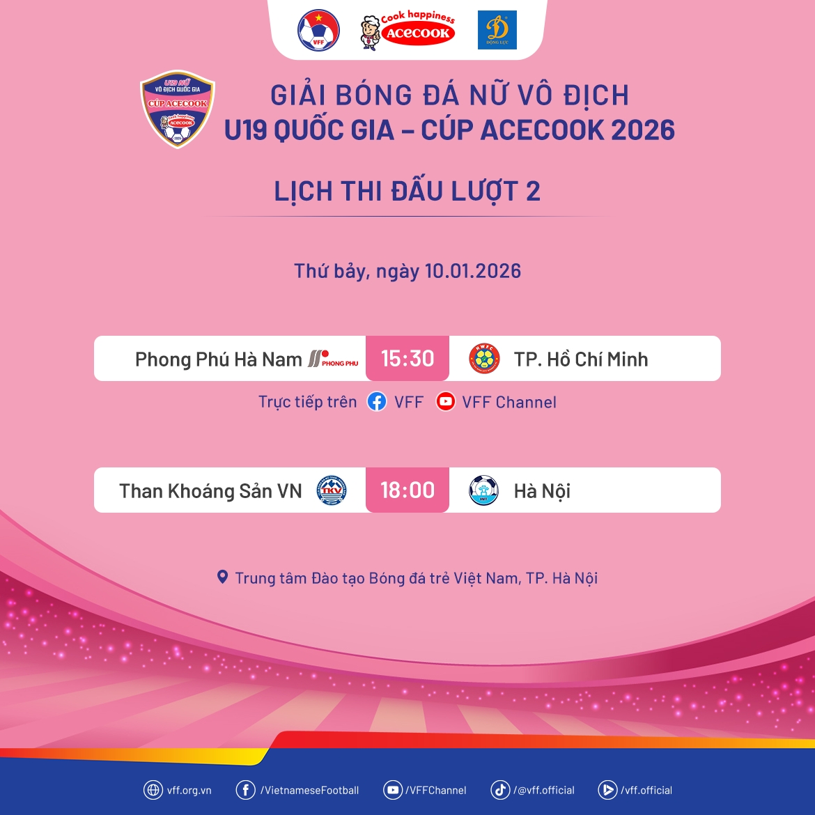 Trong khi đó, giải bóng đá U19 nữ Quốc gia sẽ bước vào lượt trận thứ 2 với các trận đấu được diễn ra tại trung tâm đào tạo bóng đá trẻ Việt Nam ở Hà Nội. Vào lúc 15h30, ứng viên vô địch Hà Nam sẽ có cuộc so tài với TP.HCM. Nếu tiếp tục giành chiến thắng, Hà Nam sẽ tiến bước dài đến việc bảo vệ thành công chức vô địch. Vào khung 18h, Than KS Việt Nam sẽ có trận đấu mở màn mùa giải gặp Hà Nội.