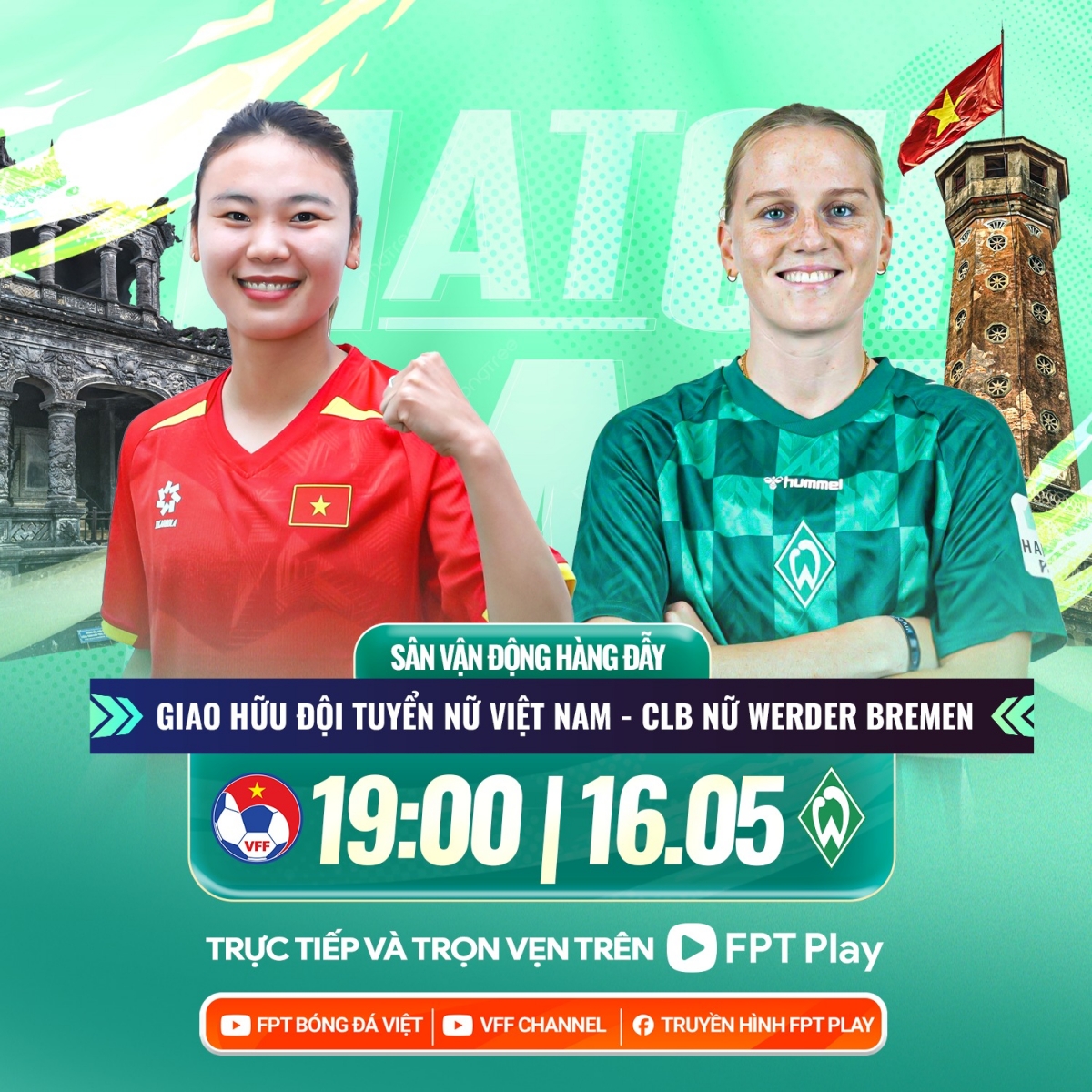 Theo lịch thi đấu và trực tiếp bóng đá hôm nay 16/5, ĐT nữ Việt Nam vs CLB Werder Bremen sẽ có trận giao hữu quốc tế trên sân Hàng Đẫy vào lúc 19h. Đây là sự kiện nằm trong chuỗi hoạt động kỉ niệm chào mừng 50 năm thiết lập quan hệ ngoại giao giữa Việt Nam và Đức. Quý độc giả có thể xem trực tiếp trận đấu trên FPT Play và cập nhật diễn biến trận đấu tại VOV.VN.