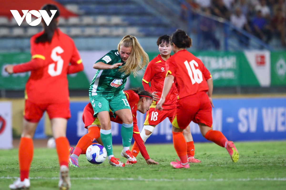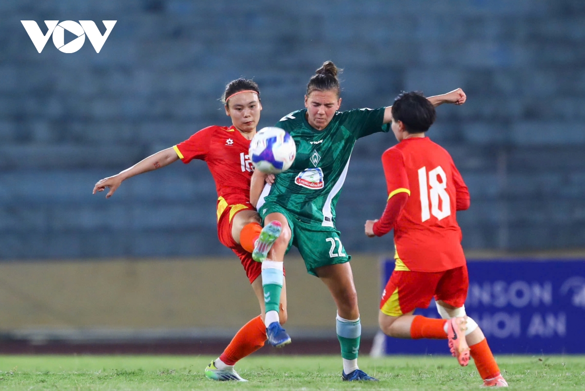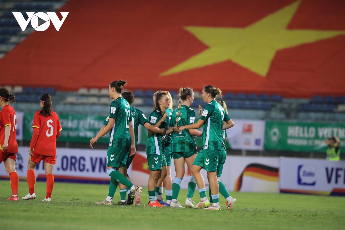 Tuy nhiên, trước đối thủ áp đảo về thể hình và thể lực cùng trình độ, ĐT nữ Việt Nam nhanh chóng bị đẩy vào thế phòng ngự. Phút 15, Ricarda Walkling ghi bàn mở tỷ số cho CLB nữ Werder Bremen.