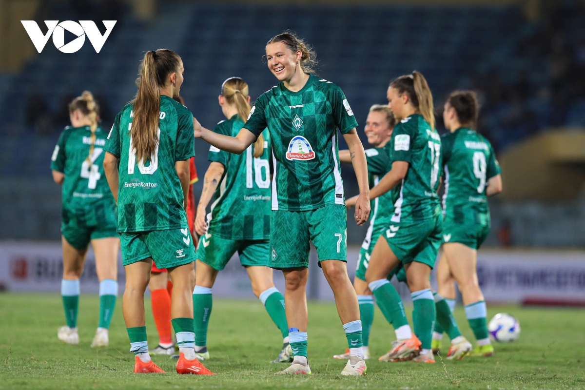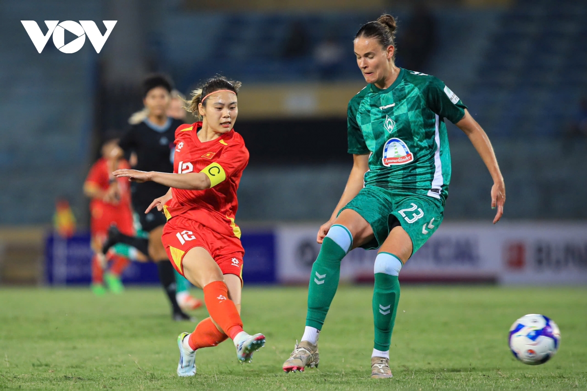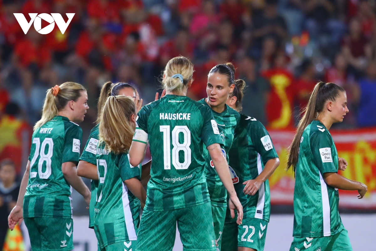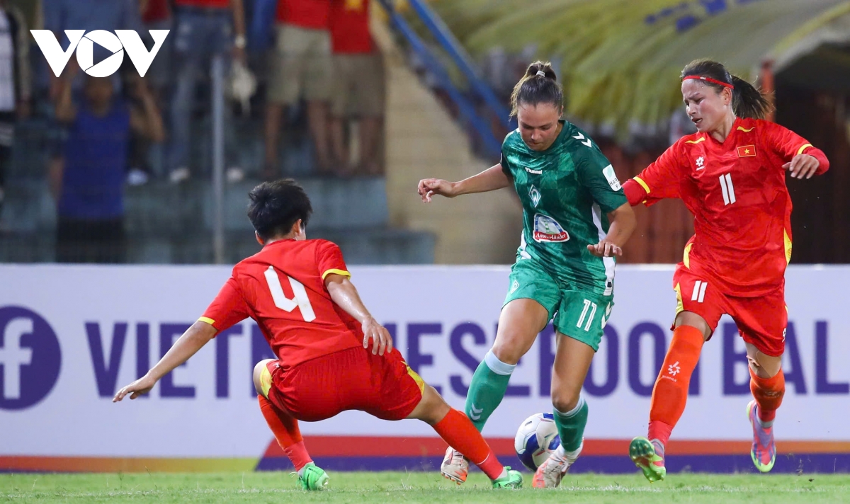 Tuy nhiên, trước đối thủ áp đảo về thể hình và thể lực cùng trình độ, ĐT nữ Việt Nam nhanh chóng bị đẩy vào thế phòng ngự. Phút 15, Ricarda Walkling ghi bàn mở tỷ số cho CLB nữ Werder Bremen.