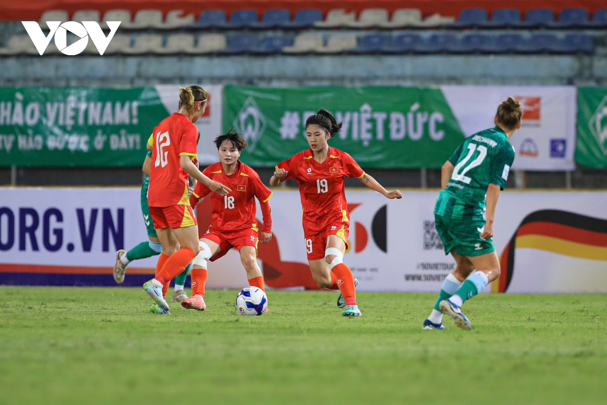 Bước vào trận đấu giao hữu là sự kiện nằm trong chuỗi hoạt động kỉ niệm chào mừng 50 năm thiết lập quan hệ ngoại giao giữa Việt Nam và Đức, ĐT nữ Việt Nam nhập cuộc đầy tự tin trước CLB nữ Werder Bremen trên sân Hàng Đẫy.