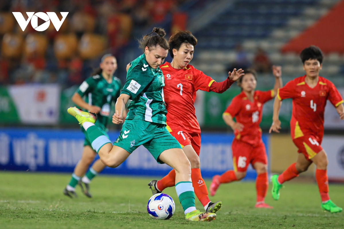 Ngay sau đó, ĐT nữ Việt Nam đáp trả với pha bứt tốc của Ngọc Minh Chuyên trước khi chuyền bóng ngang sang cho Tuyết Dung đối mặt với thủ môn Livia Peng nhưng bóng đi hơi sâu và cơ hội đã trôi qua.