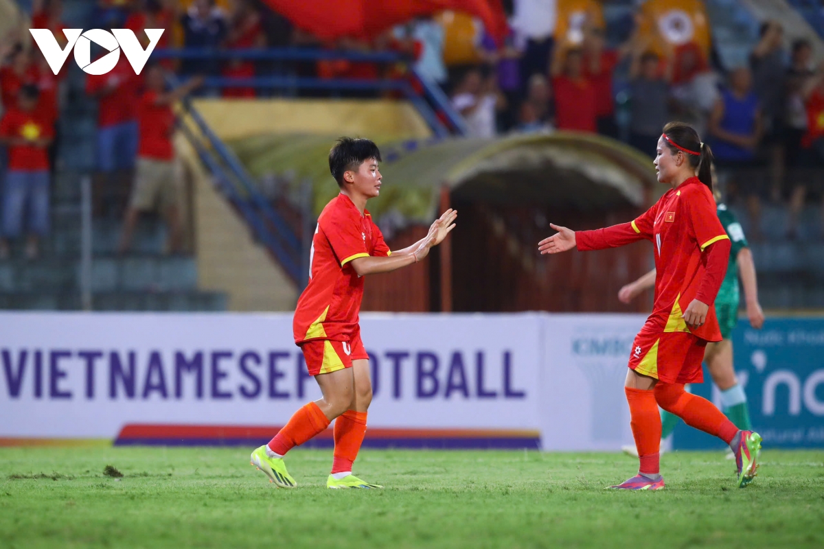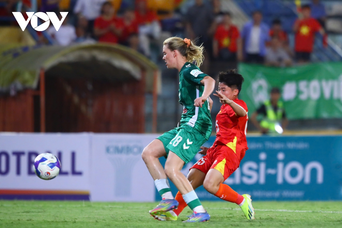 7 phút sau đó, Hải Yến bỏ lỡ cơ hội ghi bàn bằng vàng khi đệm bóng lên trời từ khoảng cách 2m khi khung thành đội khách đã bỏ trống. Tuy nhiên, ĐT nữ Việt Nam không phải chờ đợi quá lâu. Phút 64, Ngọc Minh Chuyên bứt tốc và dứt điểm tạo siêu phẩm, rút ngắn tỉ số xuống còn 1-2.