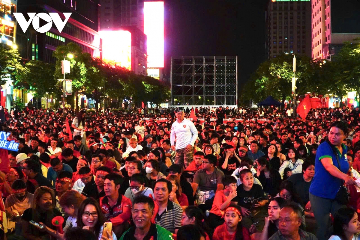 Đường đi bộ Nguyễn Huệ là điểm đến quen thuộc để cổ vũ bóng đá tại TP.HCM