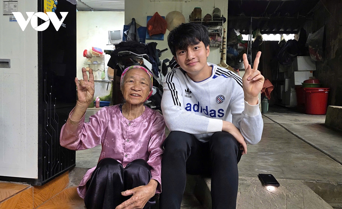 Thủ thành Cao Văn Bình cùng bà ngoại. (Ảnh: Bá Thăng).