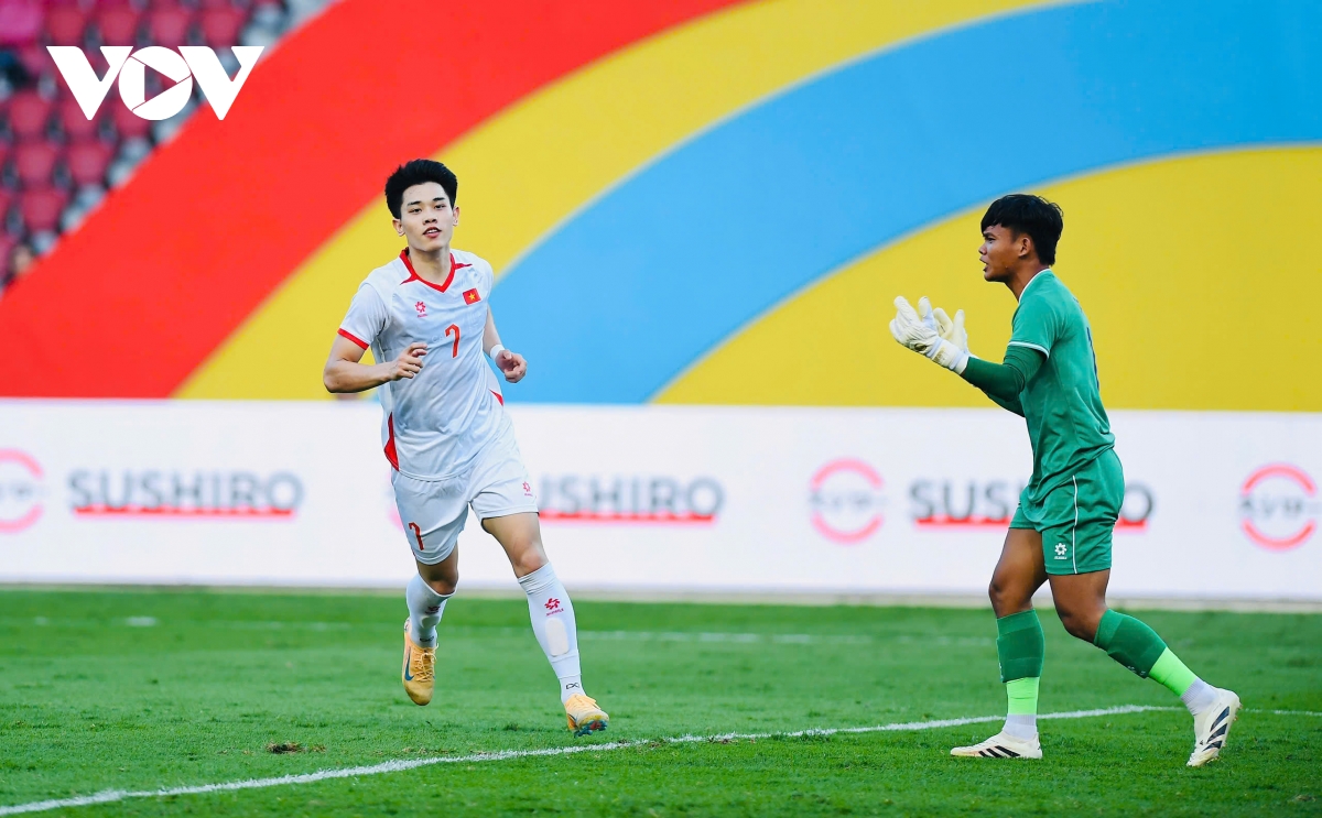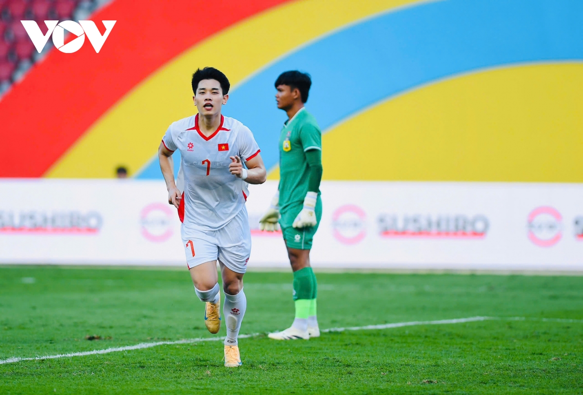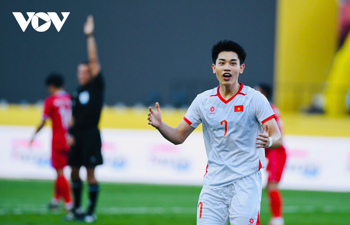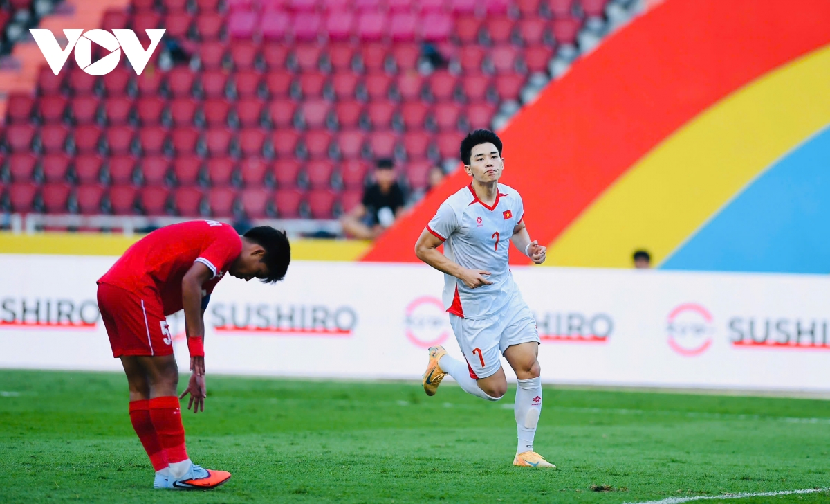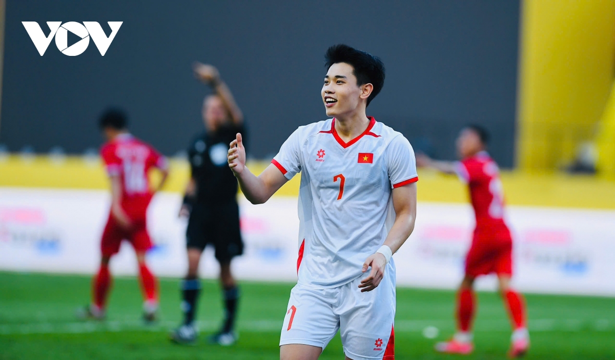 Vè mặt đầy mãn nguyện của Đình Bắc sau màn solo ngoạn mục để lập siêu phẩm vào lưới U22 Lào.