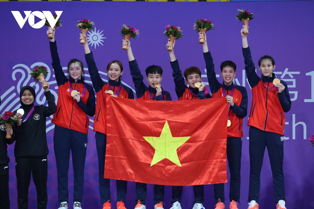 Sáng nay 4/10, đội cầu mây nữ Việt Nam tham dự chung kết nội dung cầu mây 4 nữ gặp Indonesia. Sau 3 ván đấu, các cô gái Việt Nam đã xuất sắc giành chiến thắng với tỷ số 2-1, qua đó mang về tấm HCV đầu tiên cho cầu mây và thứ 2 cho Đoàn Thể thao Việt Nam tại ASIAD 19.