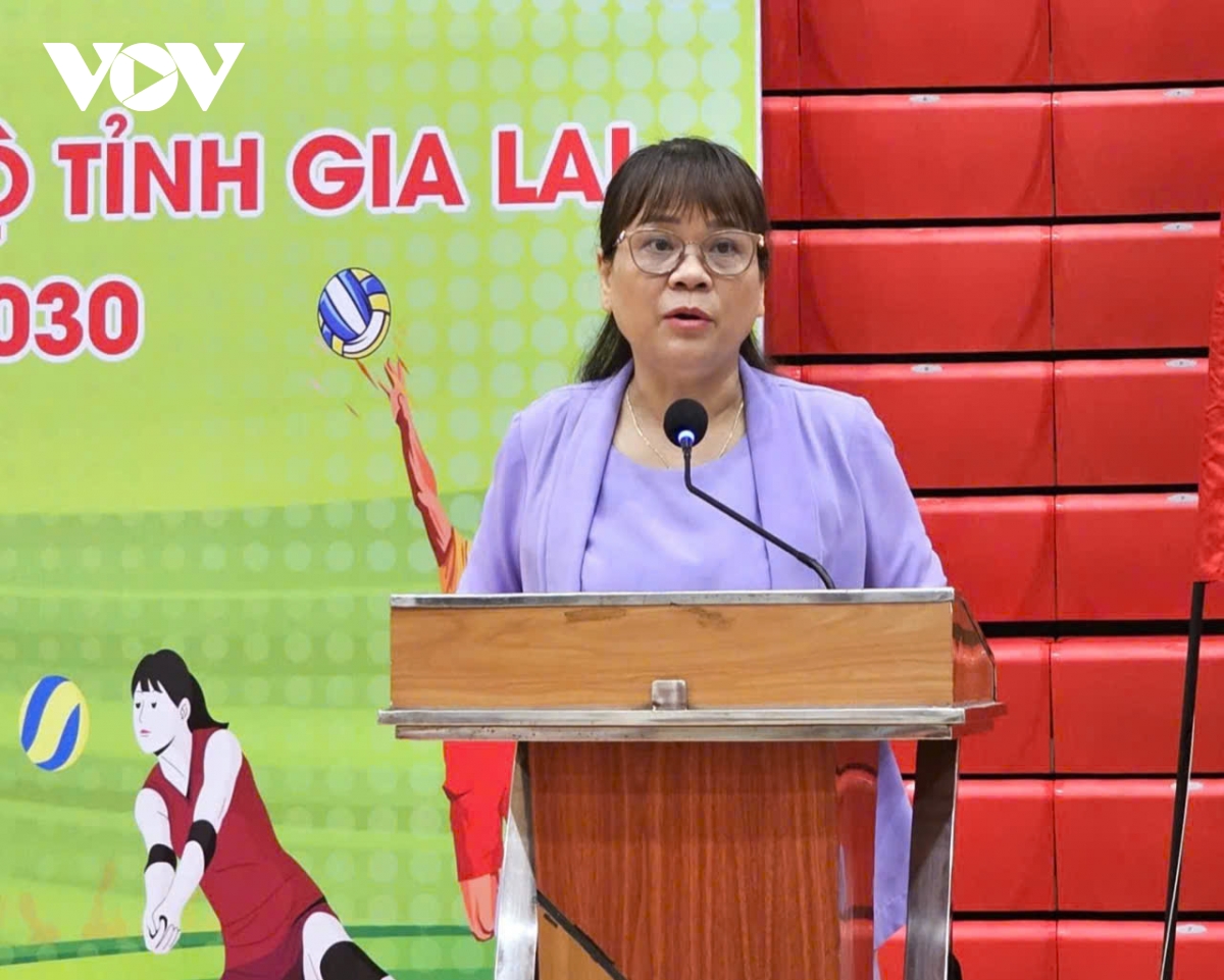 Bà Võ Thị Thu Hòa, Phó Bí thư Đảng ủy UBND tỉnh Gia Lai phát biểu khai mạc hội thao
