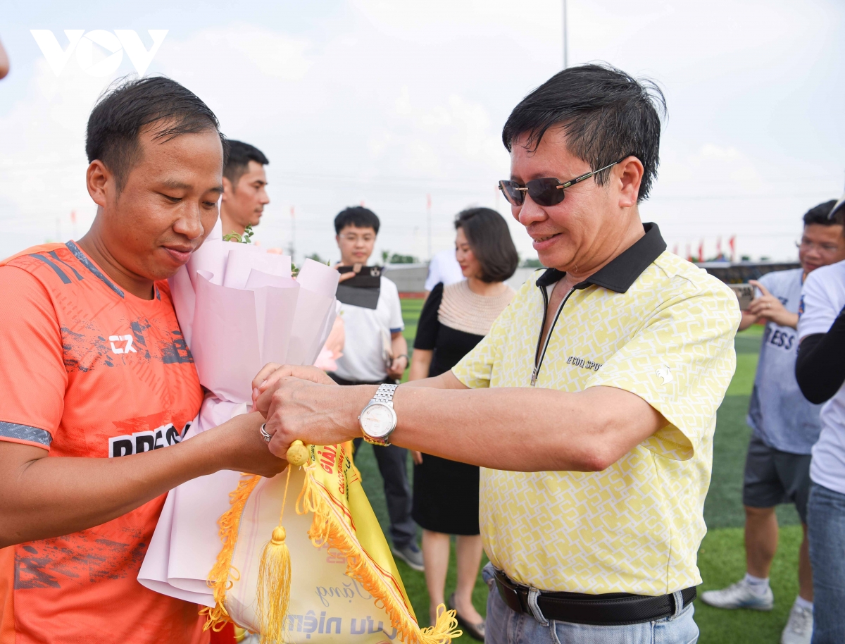 Phó Tổng Giám đốc VOV Vũ Hải Quang trao cờ, hoa và phần thưởng cho đội bóng VOV