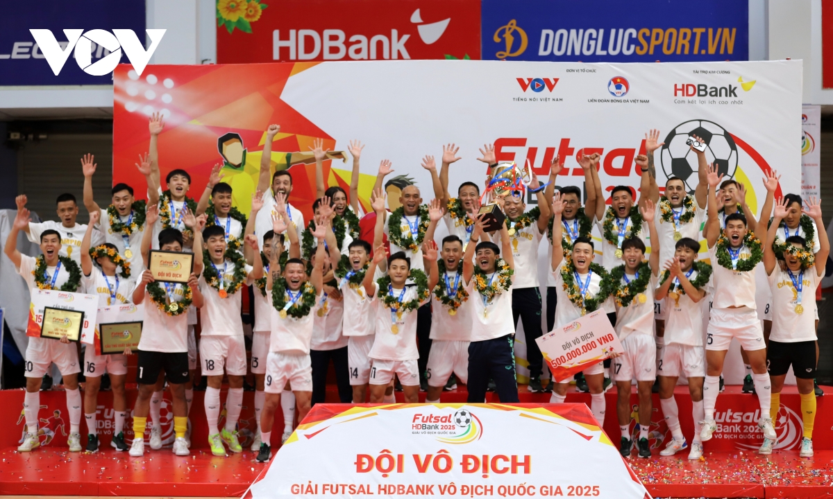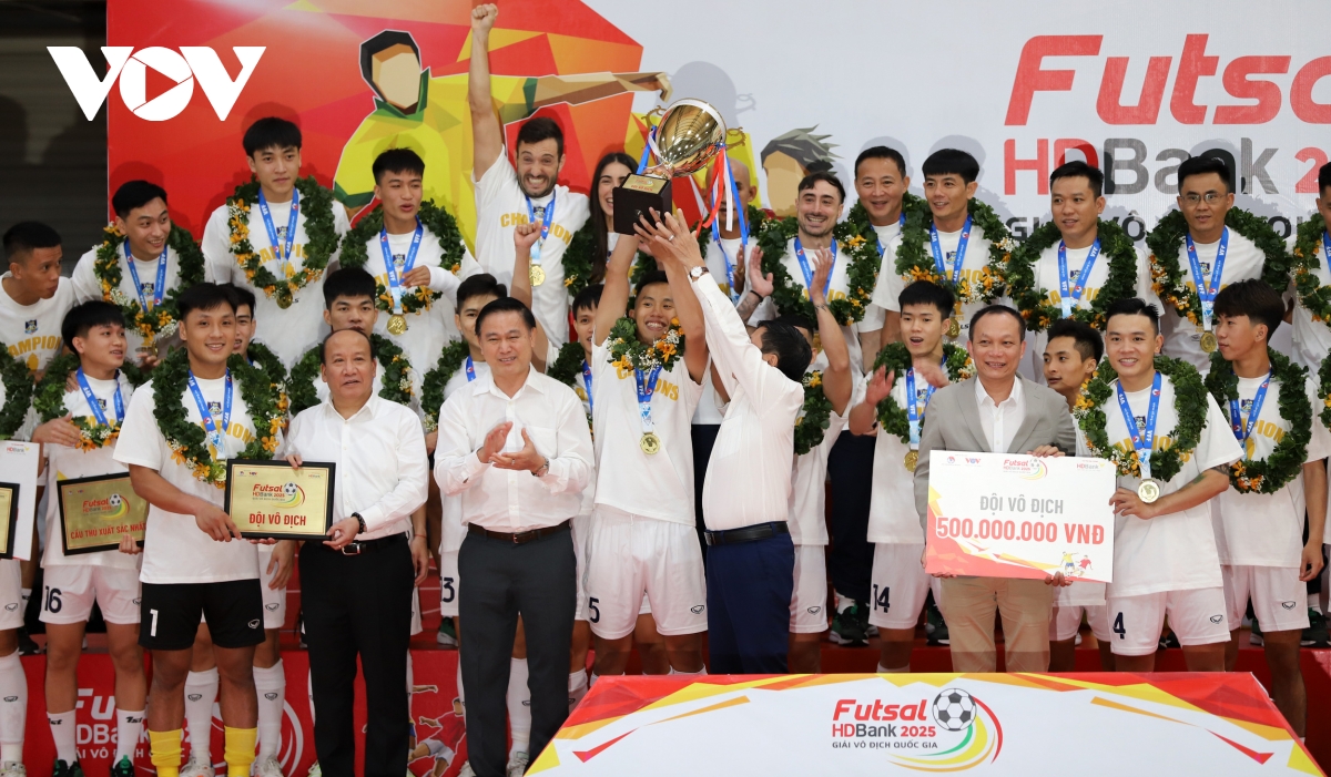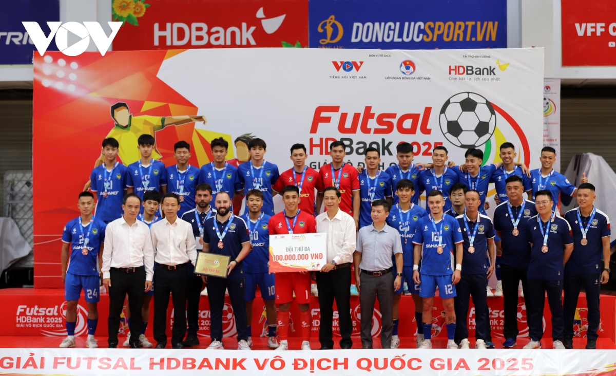 VOV.VN - Tối 28/6, tại TP.HCM diễn ra trận đấu cuối cùng và lễ bế mạc Giải Futsal HDBank Vô địch Quốc gia 2025. Với kết quả hòa 2-2 với Sahako, Thái Sơn Nam chính thức lên ngôi vô địch Giải Futsal HDBank Vô địch Quốc gia 2025. Đây đã là lần thứ 14 lên ngôi của đội bóng này sau 18 lần giải được tổ chức.