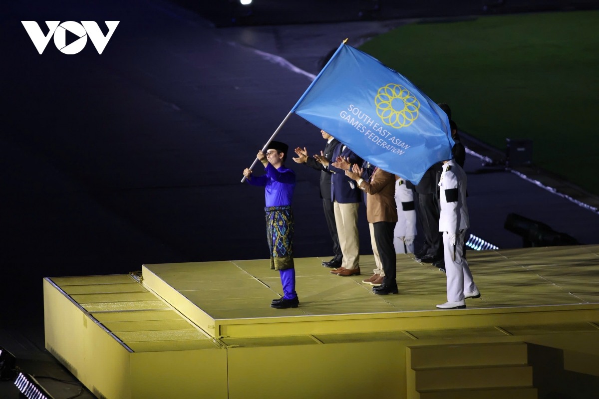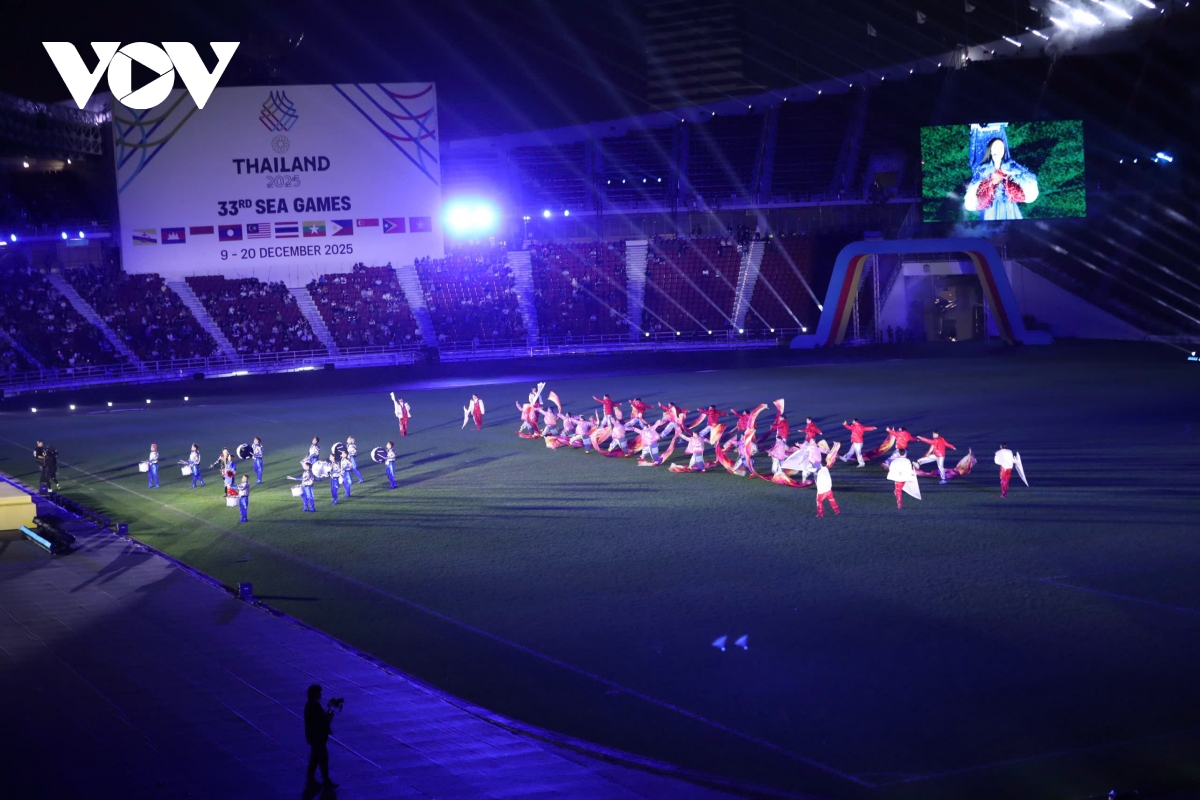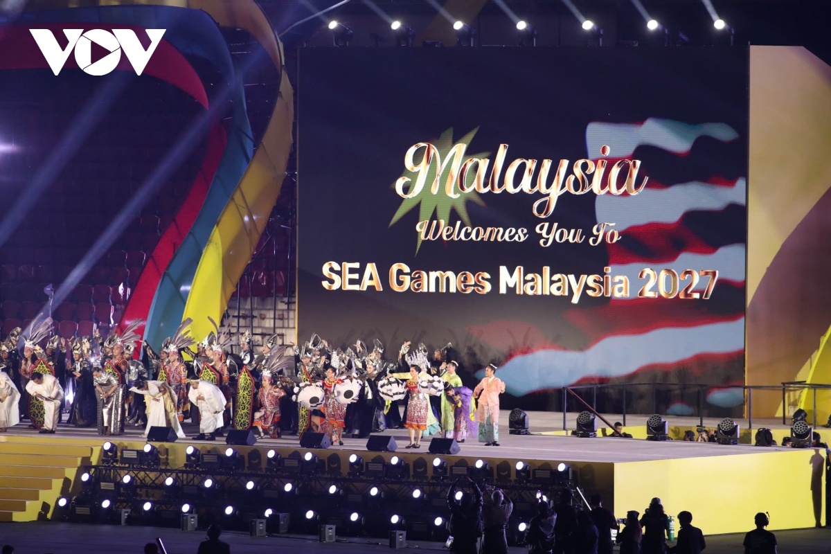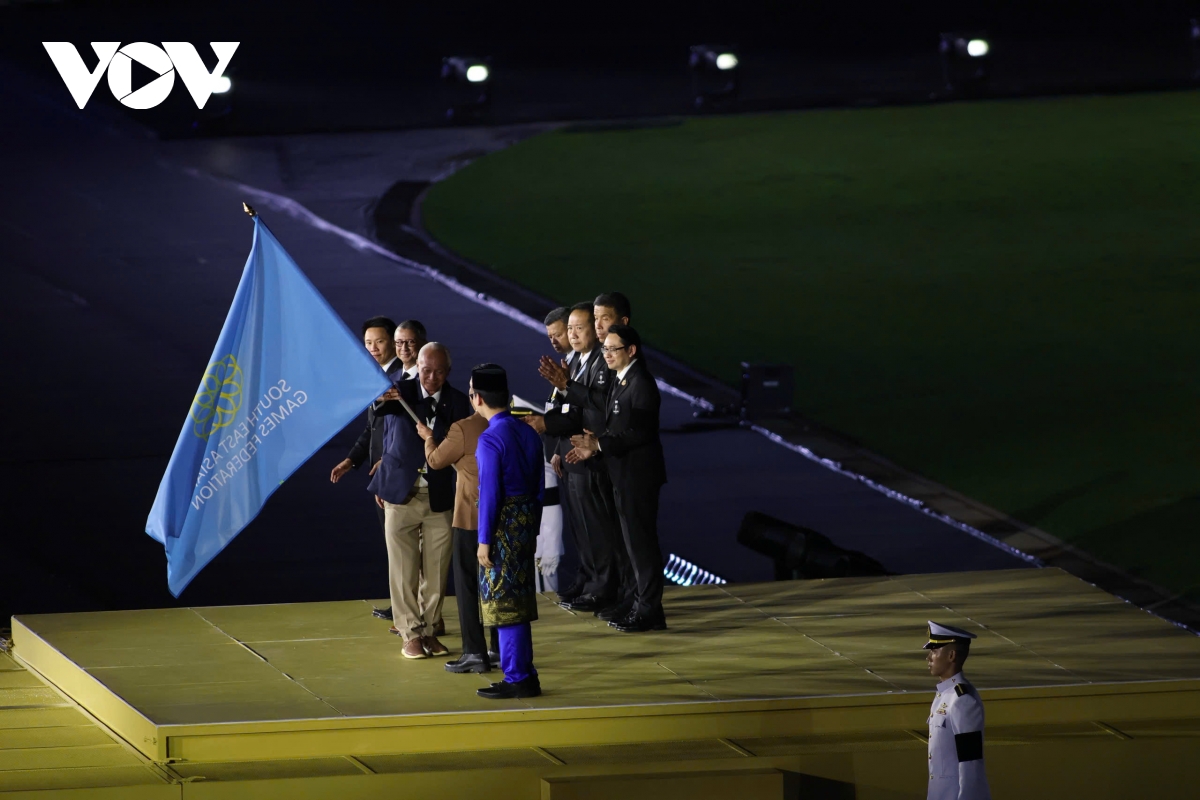 Chủ nhà Thái Lan tiến hành trao cờ đăng cai cho Malaysia, quốc gia sẽ tổ chức SEA Games 34 vào năm 2027. Ngay sau nghi thức này, Thái Lan giới thiệu tiết mục nghệ thuật “Rhythm in Harmony”, mang đậm dấu ấn văn hóa và truyền thống của Malaysia, như lời chào và lời chúc gửi tới nước chủ nhà tiếp theo.