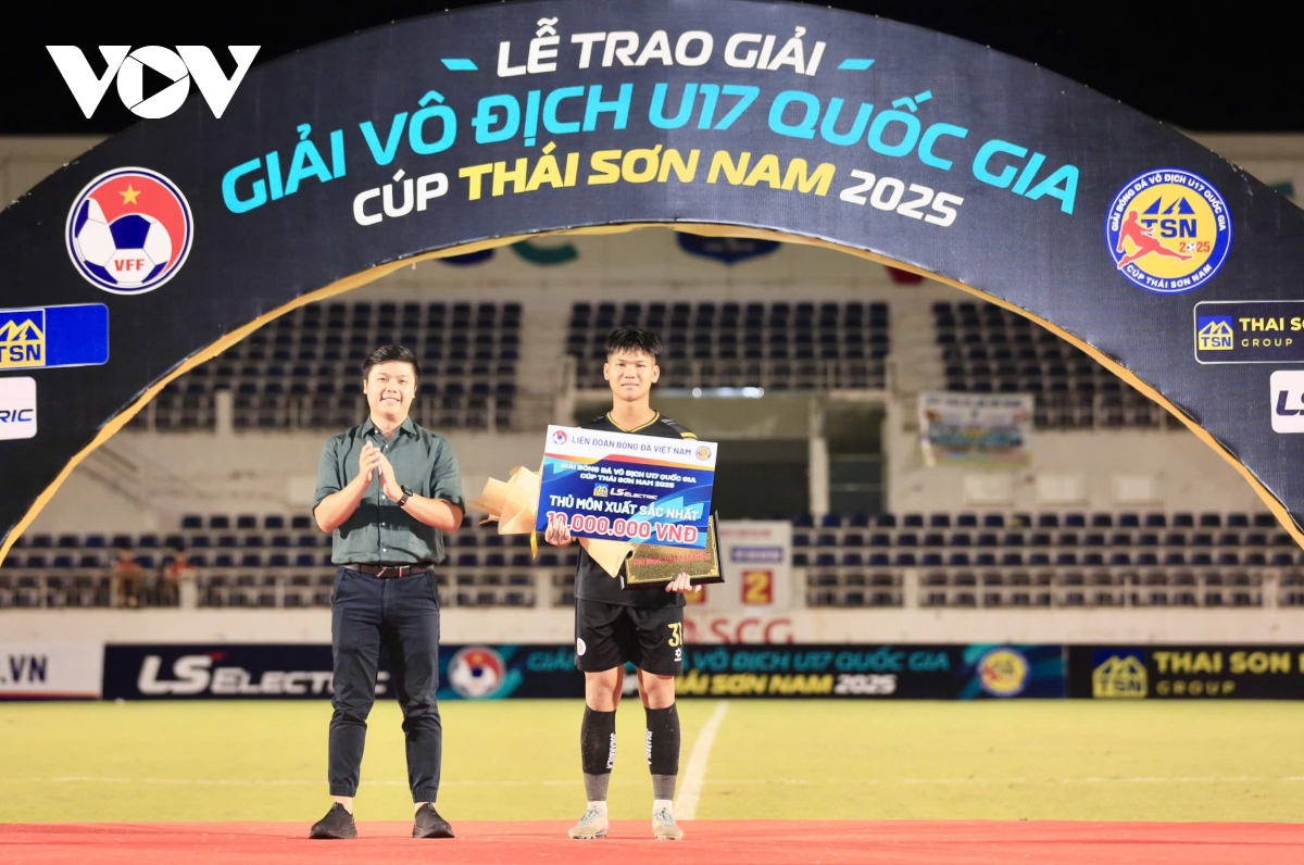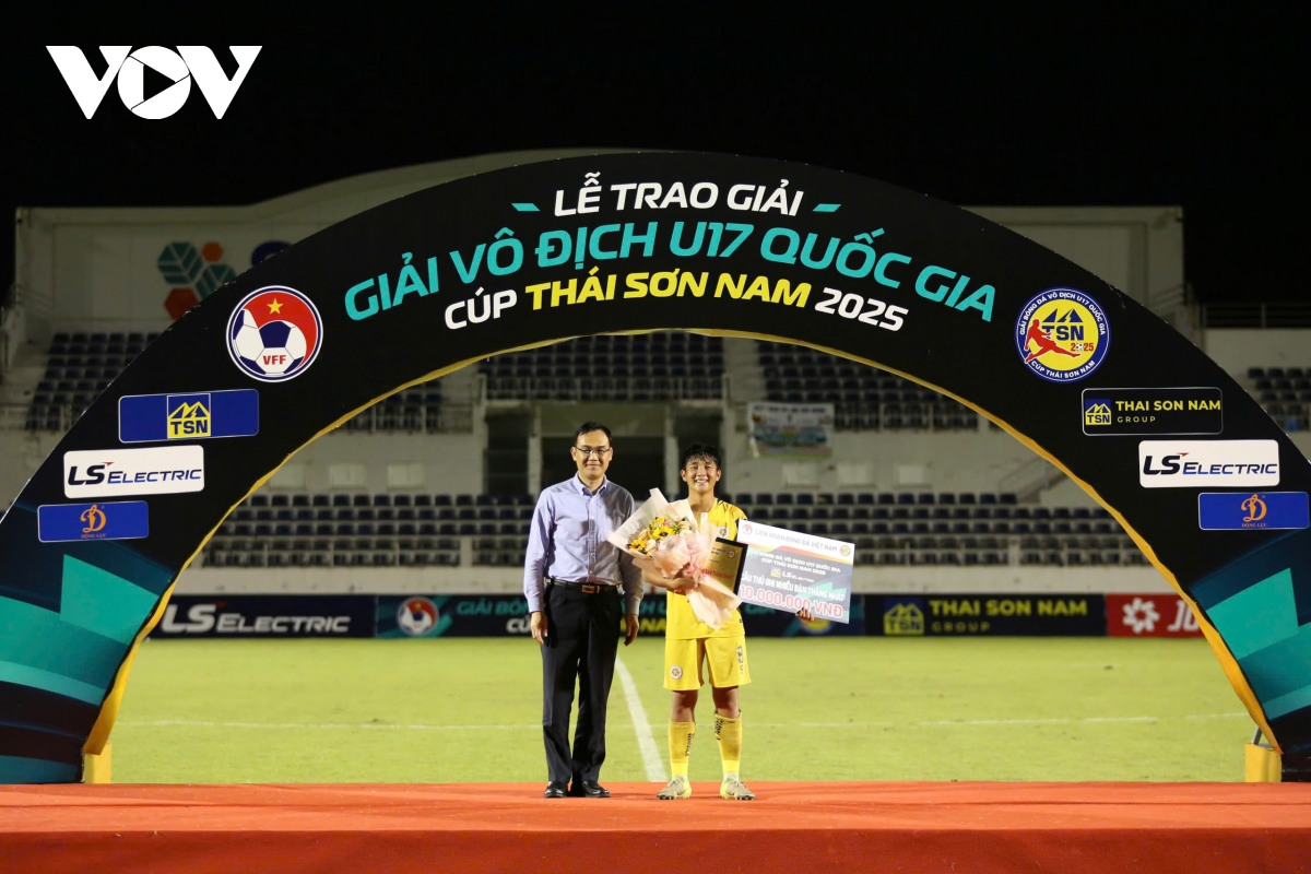 Trong khi đó, U17 Hà Nội còn "ẵm" hai giải thưởng cá nhân ấn tượng khác khi Trần Mạnh Quân tiếp tục chinh phục được danh hiệu Vua phá lưới VCK U17 Quốc gia 2025 sau khi độc chiếm danh hiệu Vua phá lưới VCK U15 Quốc gia cũng trong năm nay; còn thủ môn Chu Bá Huấn đã giành được danh hiệu Thủ môn xuất sắc nhất VCK U17 Quốc gia năm nay.