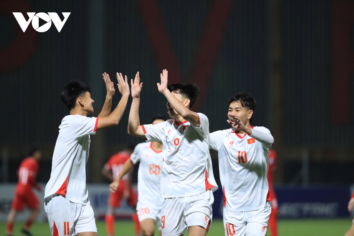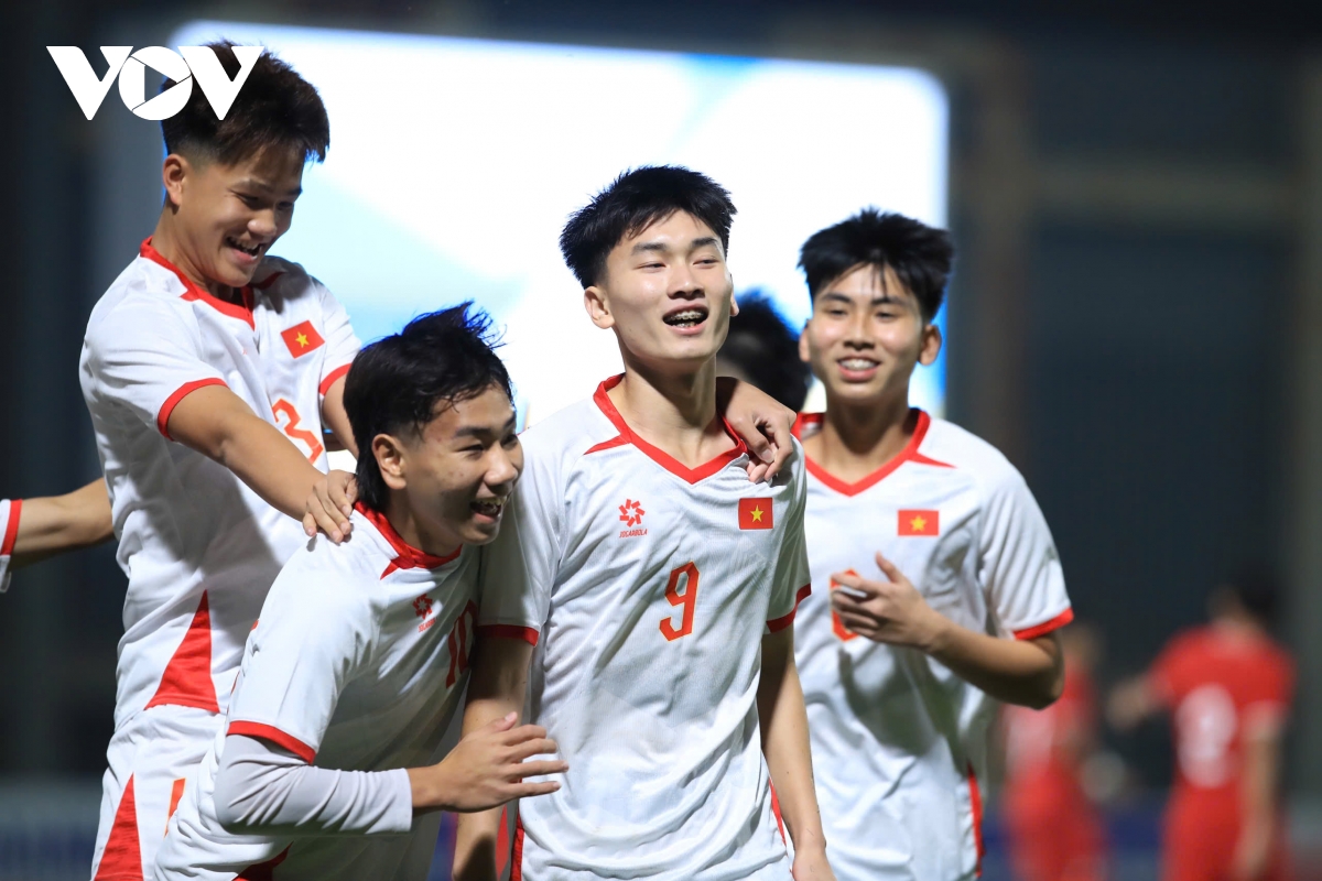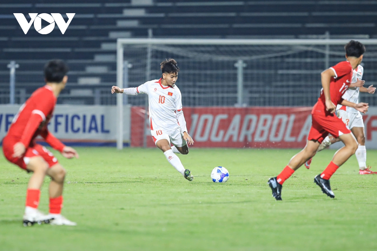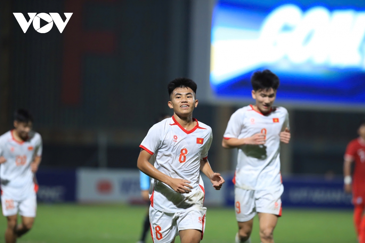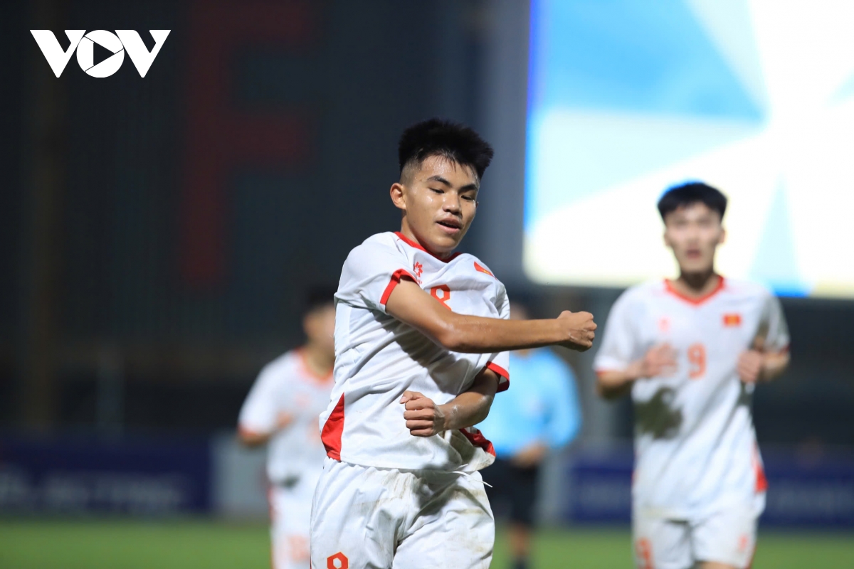 Sau bàn thắng sớm, U17 Việt Nam càng thi đấu tự tin, liên tục phối hợp trung lộ và đánh biên hiệu quả. Phút 25, Lê Sỹ Bách nhân đôi cách biệt sau tình huống dứt điểm bồi khéo léo. Đến phút 38, Minh Thủy nâng tỷ số lên 3-0 với pha xử lý tinh tế, giúp đội chủ nhà khép lại hiệp 1 đầy hứng khởi.