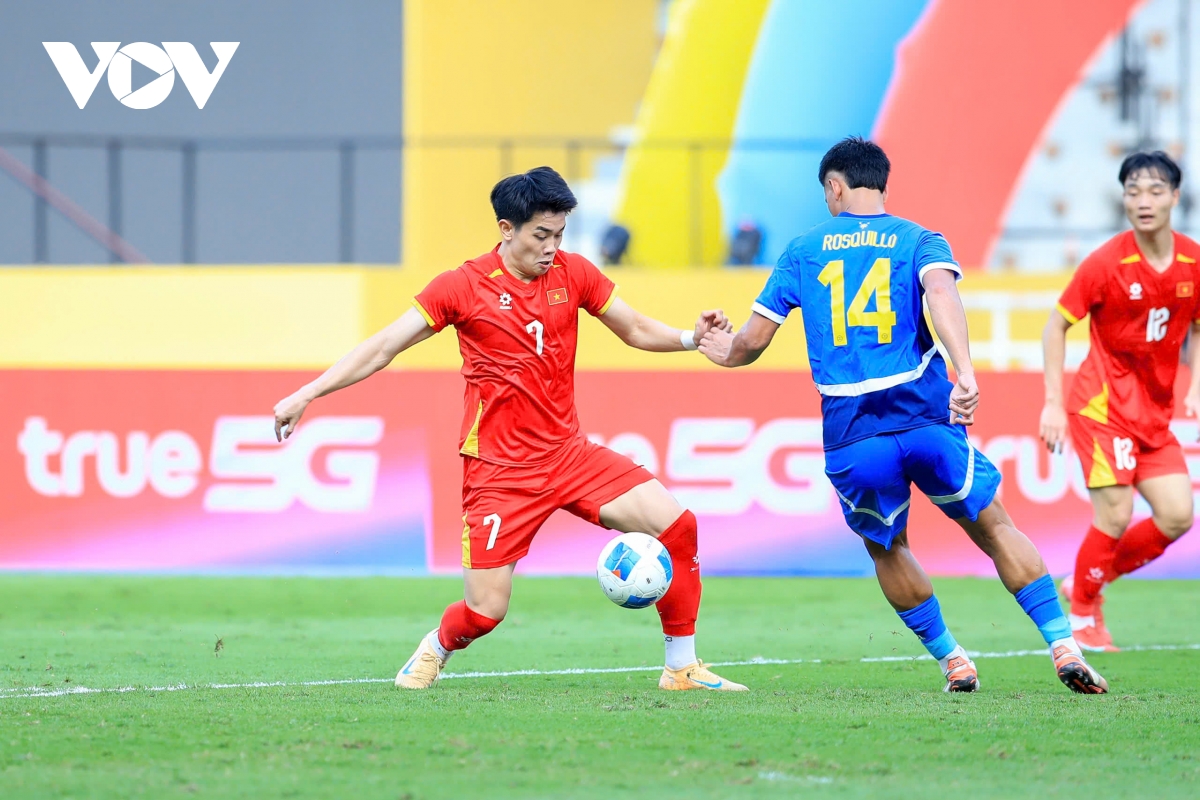 U22 Việt Nam giành chiến thắng thuyết phục 2-0 trước U22 Philippines ở trận bán kết môn bóng đá nam SEA Games 33, qua đó hiên ngang tiến vào chung kết sau một trận đấu đầy kiên nhẫn và bản lĩnh. Ngay sau tiếng còi khai cuộc, U22 Việt Nam chủ động đẩy cao đội hình, kiểm soát thế trận và liên tục tổ chức các pha tấn công biên.