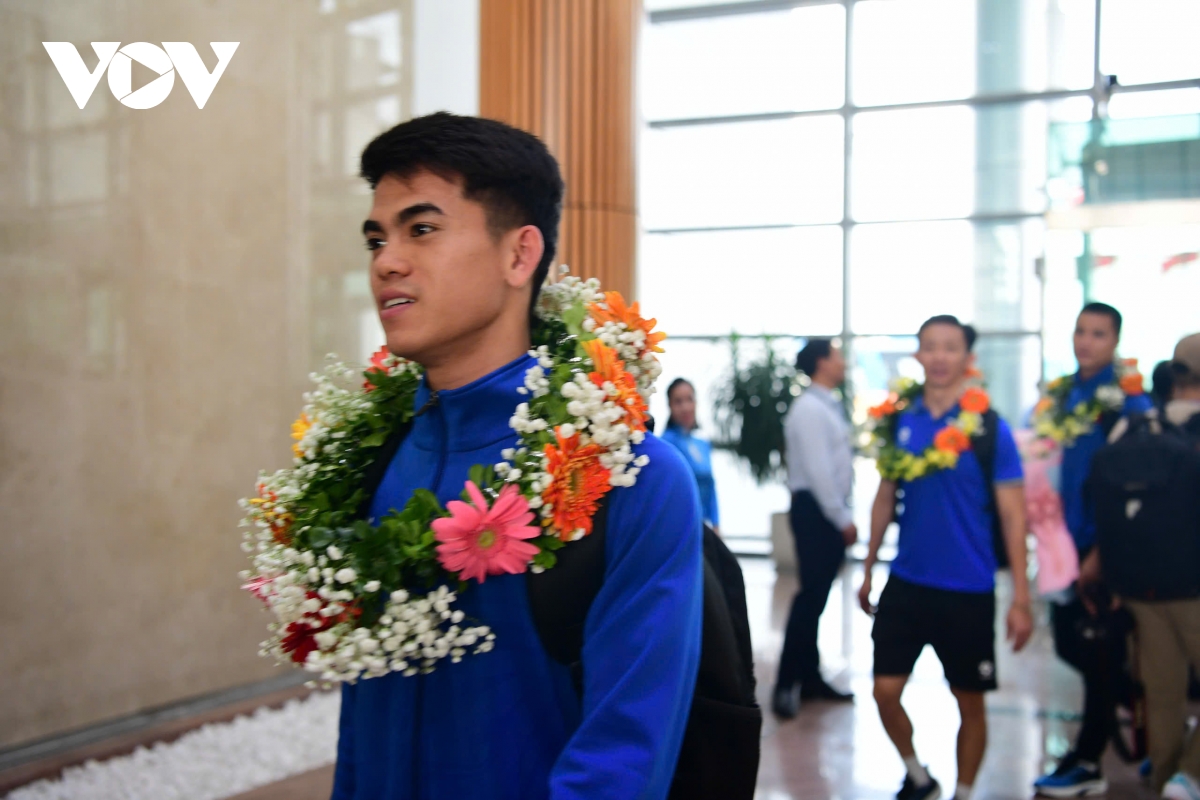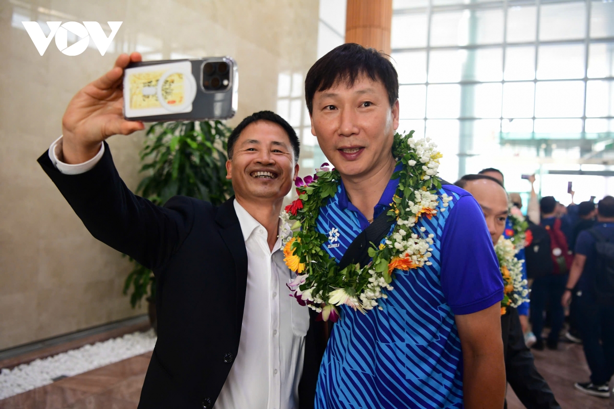 Tại sân bay, thầy trò HLV Kim Sang Sik nhận được sự chào đón nồng nhiệt từ phía người hâm mộ bóng đá Việt Nam. Tiền đạo Xuân Son – người dính chấn thương nặng phải nằm trên giường cứu thương để lên máy bay.