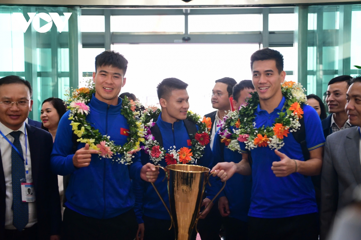 Theo lịch trình, ĐT Việt Nam sẽ hạ cánh tại sân bay Nội Bài vào lúc 14h30 chiều nay 6/1. Tại sân bay, Lãnh đạo của Bộ Văn hóa, Thể thao và Du lịch, Cục Thể dục thể thao, Liên đoàn Bóng đá Việt Nam (VFF) sẽ ra đón thầy trò HLV Kim Sang Sik. Theo thông báo mới nhất, xe cứu thương sẽ đón Xuân Son tại sân bay Nội Bài. Trong khi đó, ĐT Việt Nam sẽ được đón bằng xe buýt 2 tầng. Vào lúc 18h chiều nay, Thủ tướng Phạm Minh Chính sẽ gặp mặt HLV Kim Sang Sik và ĐT Việt Nam tại Văn phòng Chính phủ để khen thưởng, biểu dương thành tích của đội tuyển.