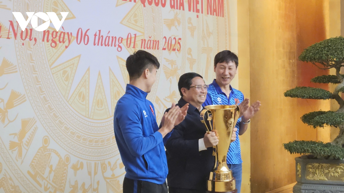 Theo phóng viên VOV.VN, hiện nay, tại Văn phòng Chính phủ, Thủ tướng Chính phủ Phạm Minh Chính đã gặp mặt Ban huấn luyện và các tuyển thủ ĐTVN, với thành tích vô địch ASEAN Cup 2024.