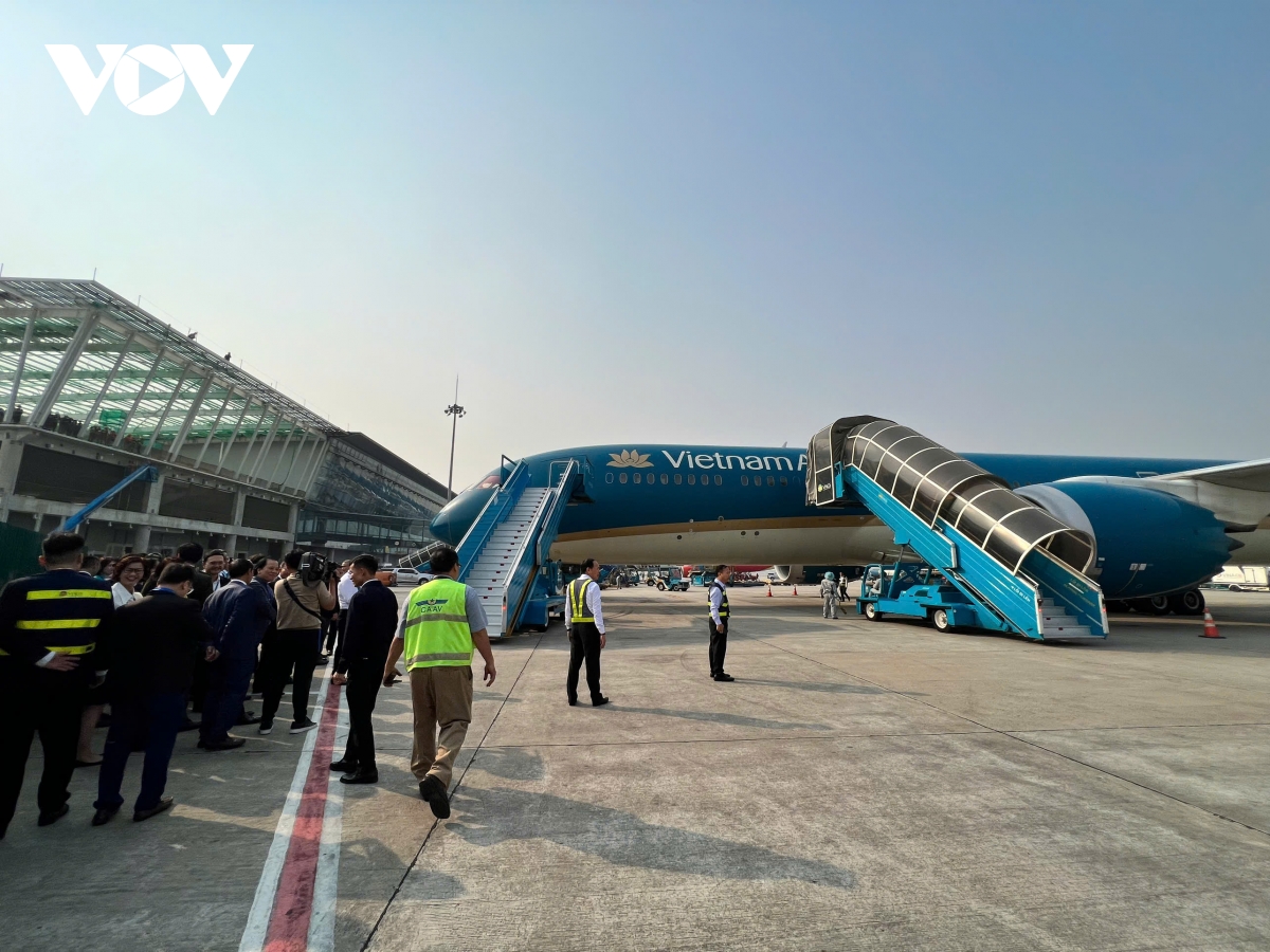 Theo PV Dương Thuật/VOV.VN: Máy bay chở ĐTVN cùng chiếc Cup vô địch ASEAN Cup 2024 vừa hạ cánh xuống sân bay Nội Bài (Hà Nội). Công tác chuẩn bị đón đội tuyển đang được hoàn tất tại đường băng sân bay.