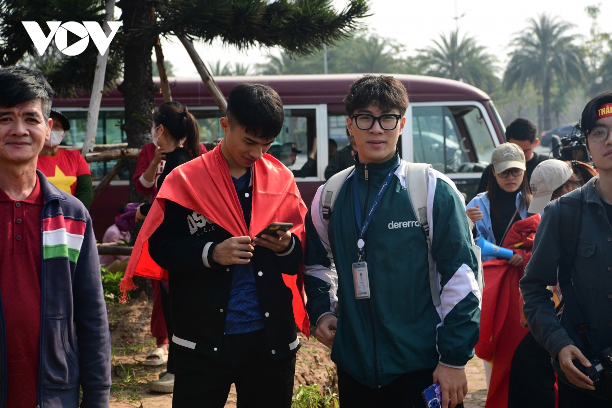 PV Dương Thuật và CTV Quách Khiêm/VOV.VN thông tin: Hội CĐV Hải Phòng hiện đang có mặt tại sân bay Nội Bài ngóng chờ ĐT Việt Nam trở về. Tâm trạng mọi người đang rất phấn khởi và háo hức chờ đón các tuyển thủ của chúng ta trở về sân bay Nội Bài.