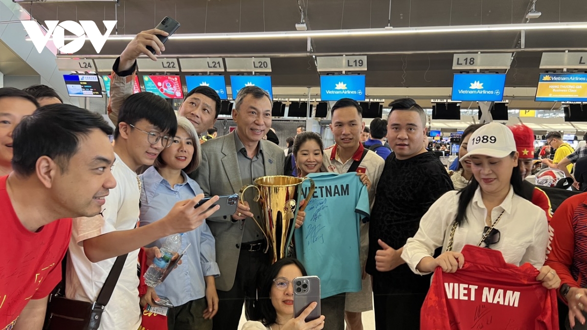 ĐT Việt Nam ra sân bay, rước cúp từ Thái Lan về nước trước sự cổ vũ nồng nhiệt từ phía người hâm mộ. Sau khi đánh bại ĐT Thái Lan để giành chức vô địch ASEAN Cup 2024. Trưa nay (6/1), ĐT Việt Nam đã ra sân bay lên đường về nước.