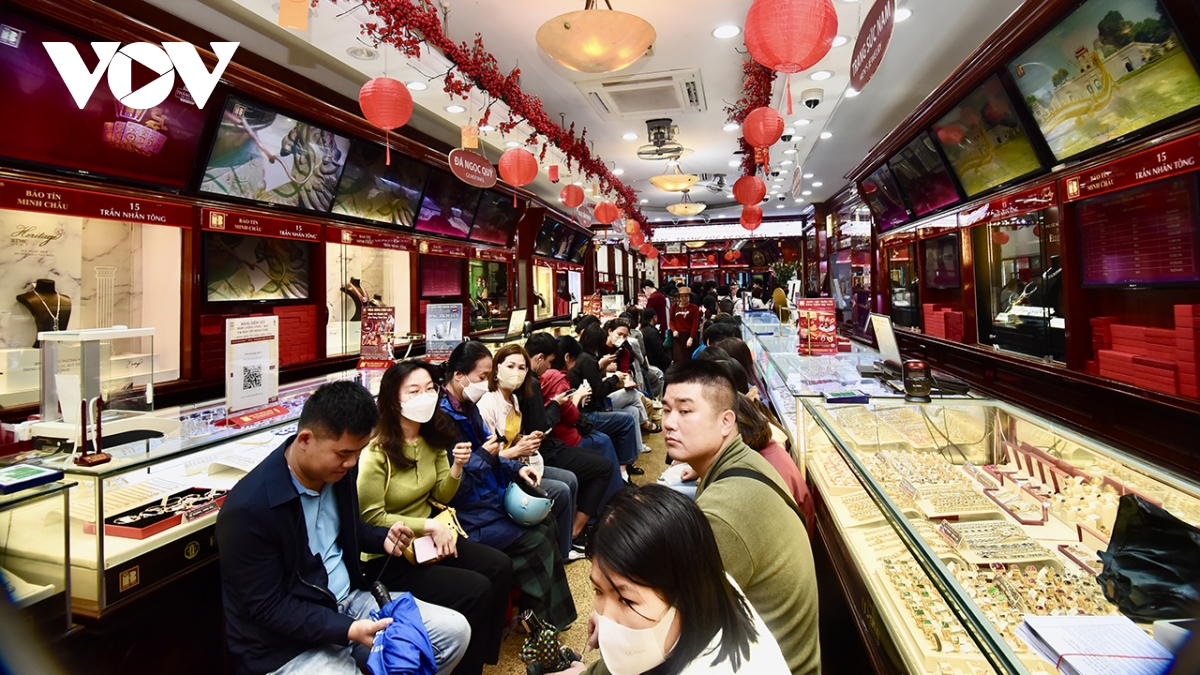 Bên trong các cửa hàng, khu vực quầy vàng nhẫn, vàng ép vỉ và sản phẩm vàng 99,99% luôn trong tình trạng kín chỗ. Nhân viên liên tục tư vấn, kiểm đếm và hoàn tất giao dịch. Một số nơi bố trí ghế ngồi, phát nước uống miễn phí để giảm áp lực chờ đợi cho khách.