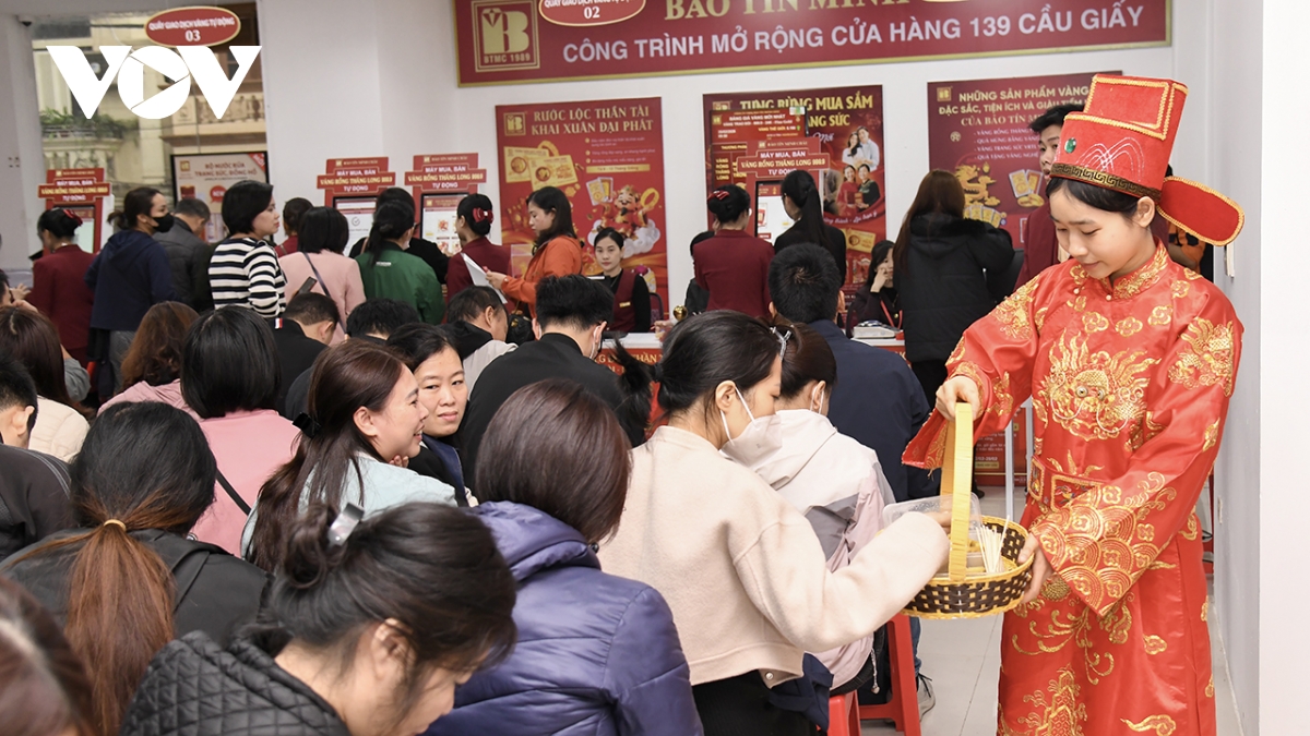 Ghi nhận trong ngày 25/2 (mùng 9 tháng Giêng), không khí mua vàng đã nóng lên tại hàng loạt thương hiệu lớn như Bảo Tín Minh Châu, Phú Quý và PNJ. Tại nhiều cơ sở, khách hàng xếp hàng từ sớm để lấy số thứ tự, chờ đến lượt giao dịch.