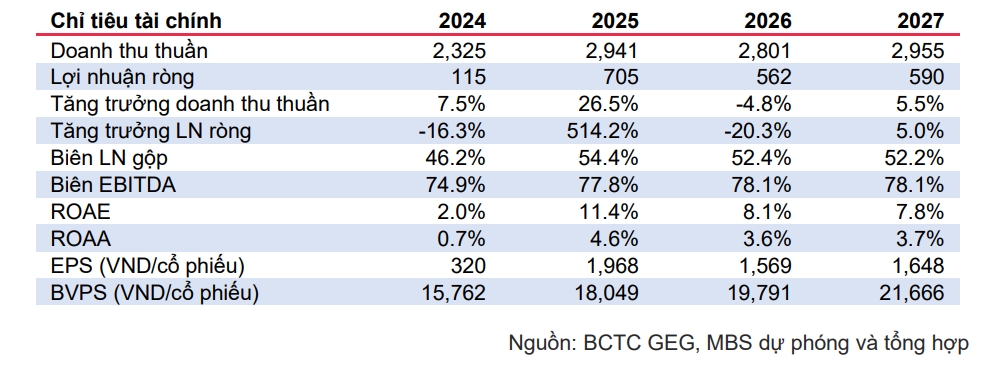 MBS khuyến nghị khả quan với cổ phiếu GEG với giá mục tiêu 19.800 đồng/cổ phiếu (tiềm năng tăng giá 22%) dựa trên hai phương pháp DCF và EV/EBITDA tỷ trọng tương đương. MBS ưa thích doanh nghiệp có tiềm năng tăng trưởng LN mạnh mẽ, phù hợp với xu hướng đầu tư chủ đạo của ngành, tập trung đẩy mạnh năng lượng tái tạo. Về mặt định giá, GEG đang có mức EV/EBITDA 2025-26 hấp dẫn 6,6x, thấp hơn so với trung bình của ngành (8,5x), phù hợp cho chiến lược đầu tư nửa cuối 2025 đầu 2026.