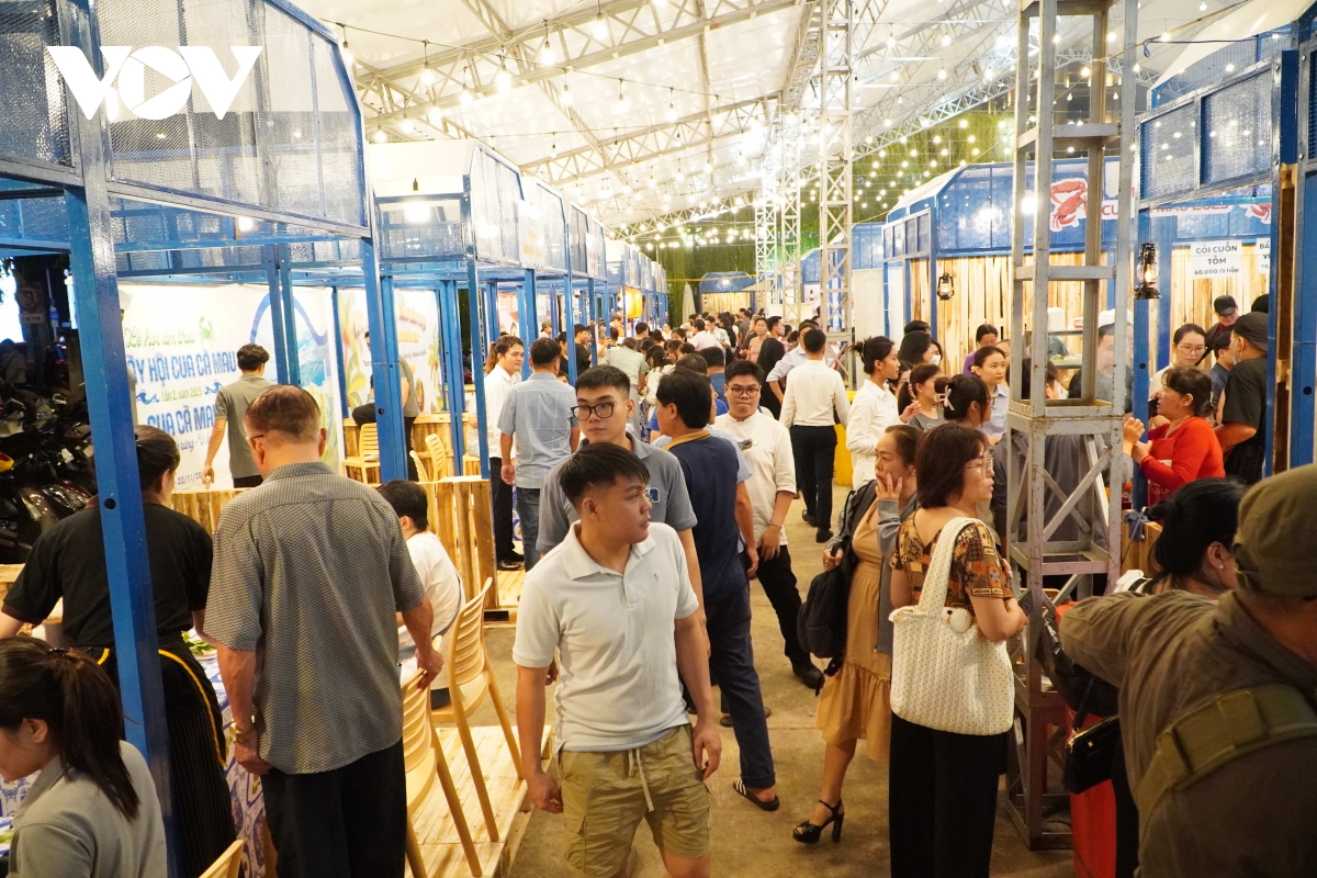 Ngay từ đầu giờ khai mạc, sự kiện đã thu hút đông đảo người dân TP.HCM. Ghi nhận tại các gian hàng bán các đặc sản của vùng Đất Mũi, lượng khách đến tham quan, thưởng thức đông đến mức phải xếp hàng chờ mua.
