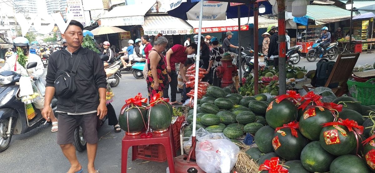 Anh Nguyễn Văn Hùng, bán dưa hấu ở chợ Tân Định, phường Tân Định (Quận 1 cũ) cho biết: “Dưa này tôi lấy về bán loại 4-10 kg, năm rồi bán 25.000 đồng/kg loại dưa Mai An Tiêm, còn dưa giống Bio bán đến 38.000 đồng/kg, nhưng lượng khách mua dưa Tết năm nay cũng ít hơn, giảm khoảng 30%”. Riêng dưa hấu dịp Tết năm nay có giá khá ổn định từ 25.000-30.000 đồng/kg nhưng tiêu thụ chậm.
