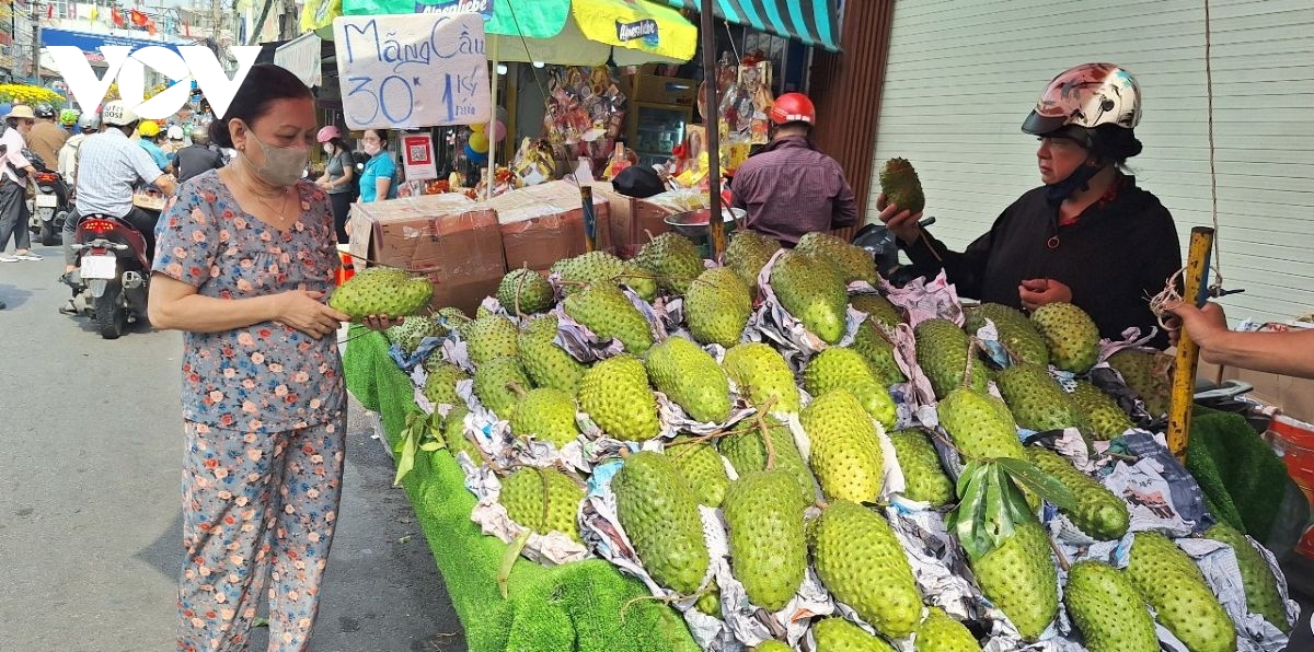Theo nhiều tiểu thương, giá trái cây tăng mạnh do năm nay có tháng nhuận, Tết rơi lệch mùa vụ trong khi thời tiết thất thường khiến sản lượng sụt giảm. Ông Nguyễn Văn Phương, bán trái cây ở đường Phạm Viết Chánh, phường Thạnh Mỹ Tây (quận Bình Thạnh cũ) cho biết: “Tết năm nay, trái cây tăng giá vì không có hàng (trái cây), không đúng mùa. Xoài và mãng cầu nguồn hàng không có nhiều, thời tiết mưa gió thất thường nên hoa rụng, đậu trái ít. Tết năm trước tôi lấy về bán mỗi loại trái cây 100 kg, tết này mỗi loại tôi chỉ lấy 50 kg, vì giá đắt và người dân cũng không có tiền mua nhiều”.