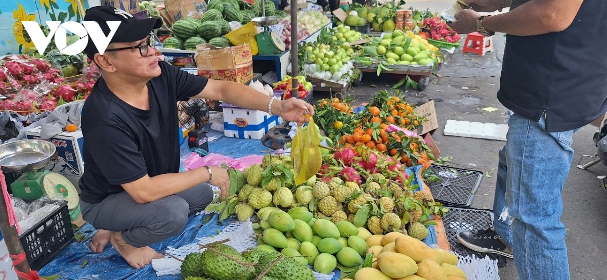 Tại các chợ truyền thống lớn, giá trái cây phục vụ mâm ngũ quả tăng mạnh. Xoài cát Hòa Lộc lên tới 100.000 đồng/kg, sung 120.000 đồng/kg, mãng cầu xiêm 60.000 đồng/kg, mãng cầu ta 100.000 đồng/kg, thanh long và đu đủ cùng ở mức 40.000 đồng/kg. Bưởi da xanh dao động từ 80.000-100.000 đồng/kg. Theo tiểu thương, năm nay có tháng nhuận, Tết rơi lệch vụ cùng thời tiết thất thường khiến sản lượng trái cây giảm, kéo giá tăng cao.