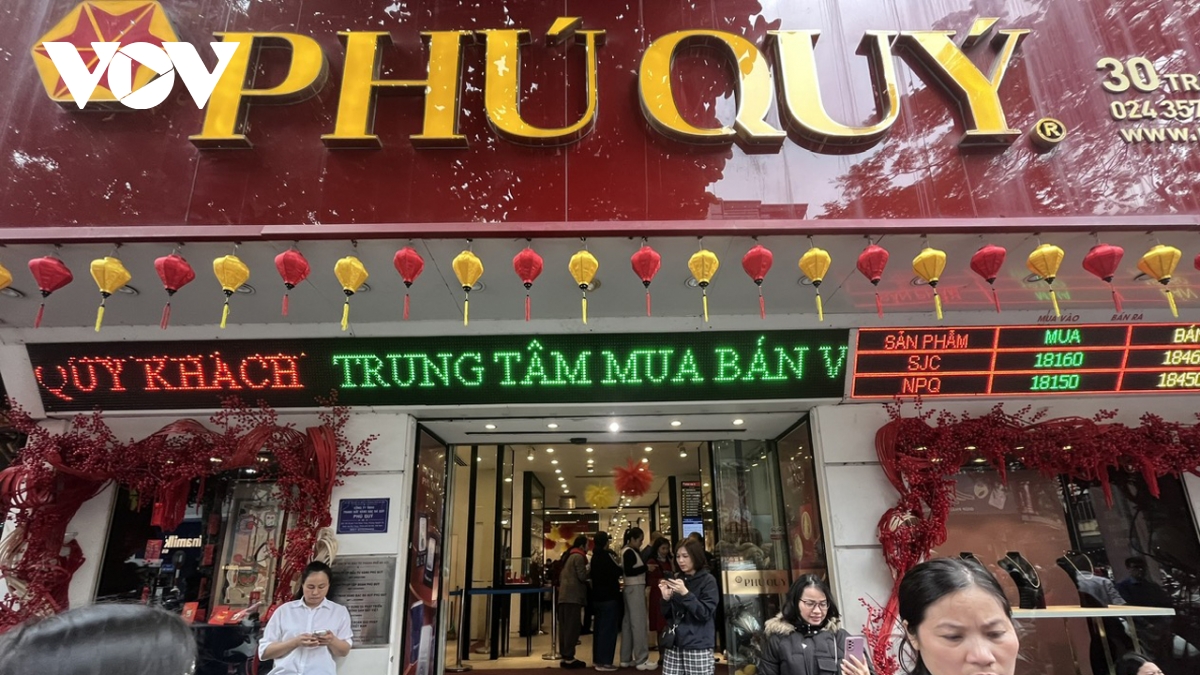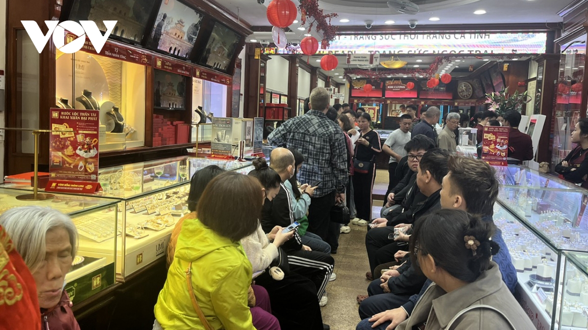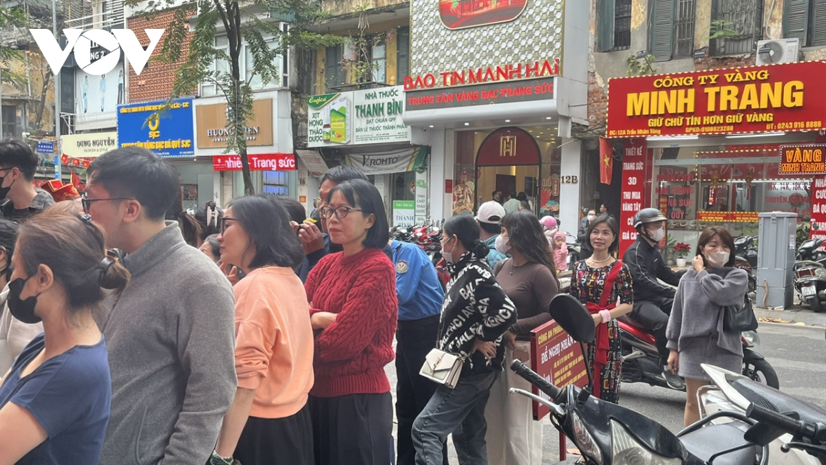 VOV.VN - Phiên giao dịch 23/2, ngày đầu tiên đi làm trở lại sau kỳ nghỉ Tết, ghi nhận diễn biến bùng nổ của thị trường vàng trong nước. Giá vàng tăng mạnh từ 2,1 - 5,6 triệu đồng/lượng, kéo theo làn sóng người dân đổ về “phố vàng” Trần Nhân Tông (Hà Nội) giao dịch, khiến nhiều cửa hàng rơi vào tình trạng quá tải.