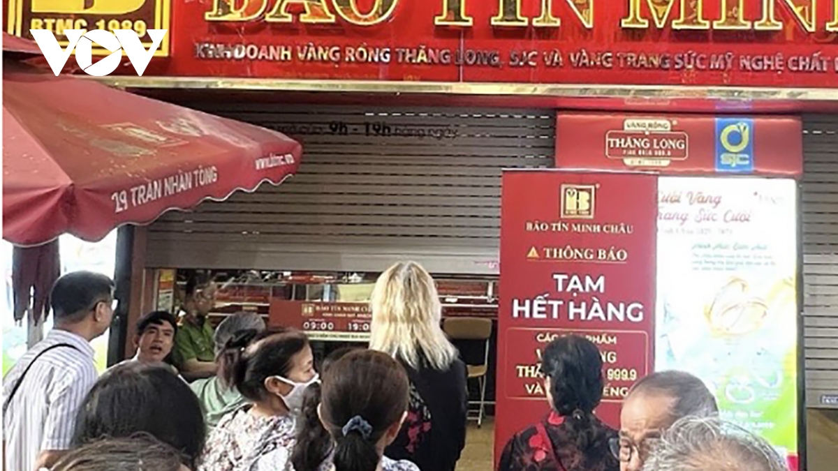 "Khoảng 10h sáng, Bảo Tín Minh Châu đã treo biển “hết hàng”. Chưa bao giờ tôi thấy vàng tăng nhanh như vậy, chỉ 30 phút là số phiếu mua hết sạch,” chị Lê Mai ở phường Cầu Giấy (Hà Nội) chia sẻ.