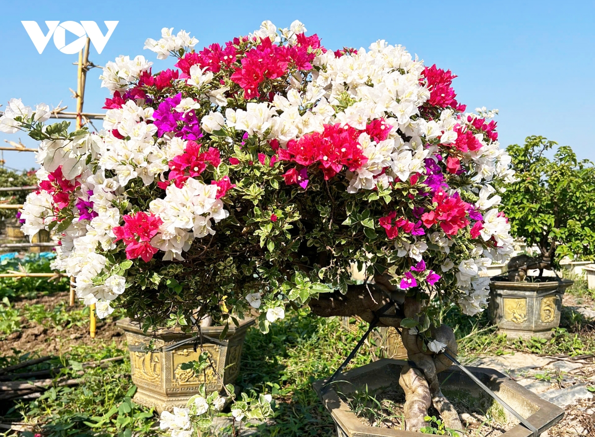 Cũng có những chậu hoa giấy được cắt tỉa công phu, phối hoa nhiều màu thì có giá cao hơn, lên đến vài triệu đồng mỗi chậu.