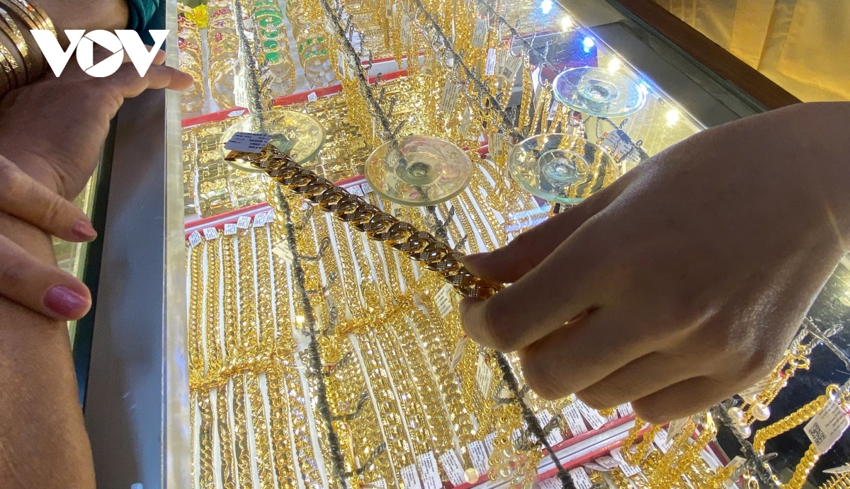 Chị Phạm Xuân (ngụ Quận 3) cho biết, hàng năm chị đều mua vàng nhẫn để tích lũy. Đây vừa là thói quen tâm linh, vừa là cách để chị tích trữ tài sản: "Nếu tôi không mua thì sẽ thấy khó chịu vì đây là một thói quen. Nếu mình không mua thì cảm thấy không an tâm nên dù ít dù nhiều thì vẫn phải đi mua. Năm ngoái tôi mua vàng giá chỉ 65,6 triệu đồng/lượng thì năm nay đã lên tới hơn 89 triệu đồng/lượng. Cửa hàng đông quá nên tôi còn chưa xem hóa đơn thanh toán. Năm nay còn có một quy định mới là phải có căn cước công dân khi thanh toán chuyển khoản nên hơi mất thời gian một tí, nhưng bù lại chuyển khoản sẽ nhanh hơn".