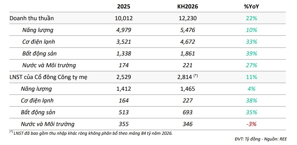 Công ty Chứng khoán KAFI duy trì đánh giá tích cực đối với Công ty CP Tập đoàn Cơ điện lạnh (REE) khi doanh nghiệp đang bước vào chu kỳ tăng trưởng mới giai đoạn 2026–2030, trong bối cảnh vĩ mô và chính sách thuận lợi, đặc biệt là nhu cầu năng lượng gia tăng và xu hướng đẩy mạnh đầu tư hạ tầng. Năm 2026 được xem là giai đoạn “xây nền” khi REE đồng thời triển khai các dự án năng lượng mới, mở rộng backlog mảng cơ điện lạnh và cải thiện hiệu suất khai thác ở mảng bất động sản.