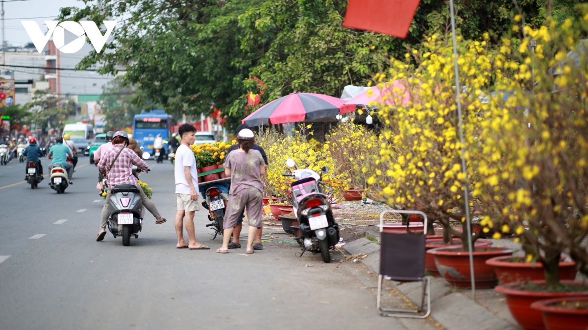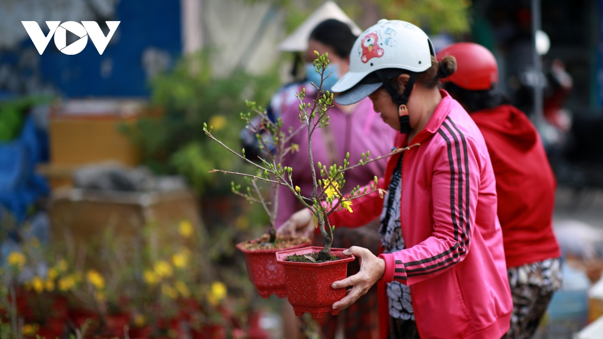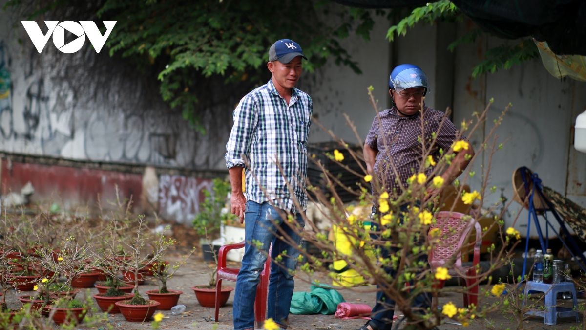 "Năm đầu tiên bán hết nhưng mấy năm sau còn mỗi năm vài trăm gốc. Ngày đầu giá khoảng 70.000 đồng. Hôm qua từ 60- 70.000 đồng và nay giảm còn 50.000 đồng. Nói chung mình bán giá mềm nên bán được nhiều", anh Huỳnh Nhật Trường, chủ vựa mai giống ở Bến Tre (cũ) bán hoa Tết ở TP.HCM nhiều năm nay cho biết.