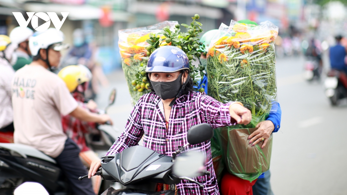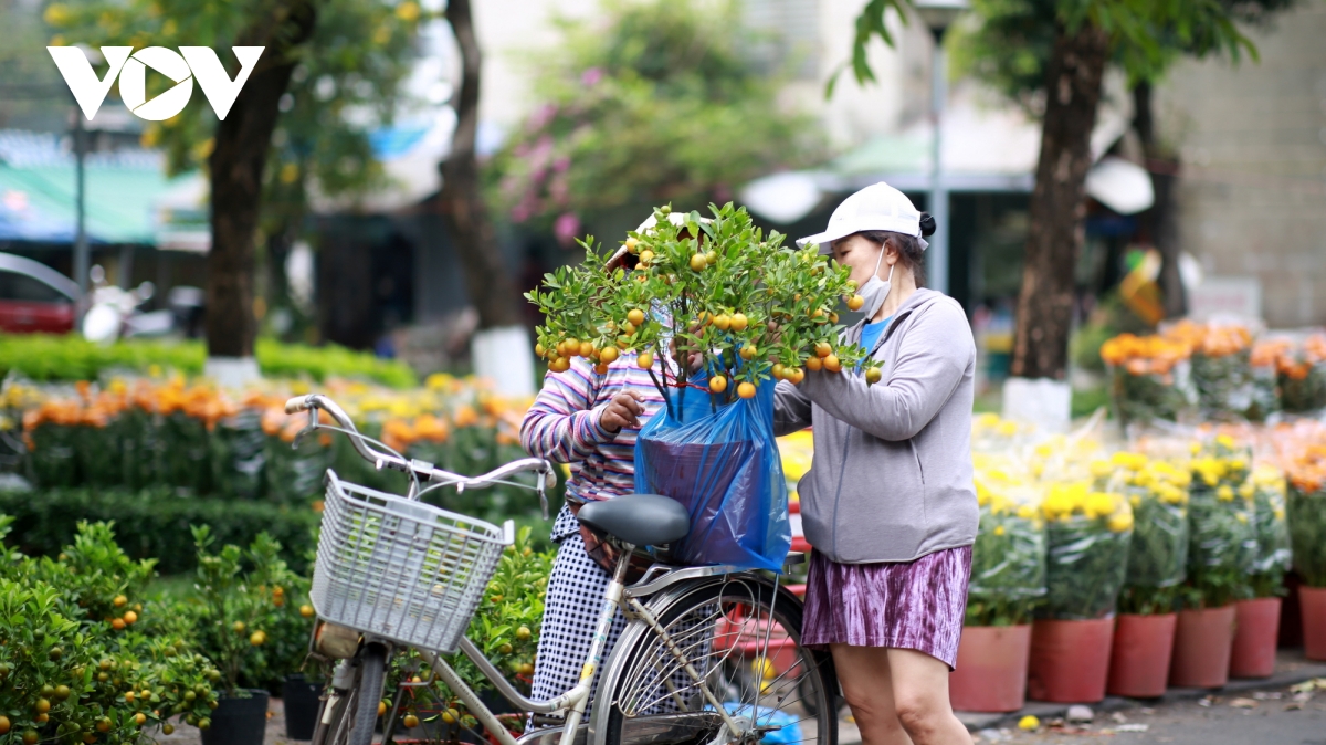 "Em bán chủ yếu là quất và vạn thọ nhưng mà chậm lắm. Chỉ có một hai ngày đầu là bán được nhưng từ 27 tháng Chạp là giá tuột nhiều. Hôm nay em đã giảm 40% và tới chiều mà bán không được em sẽ giảm thêm để về sớm", anh Nguyễn Tấn Nhựt, chủ vựa hoa ở Long Xuyên (An Giang) cho hay.