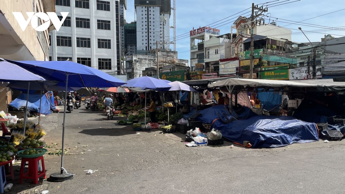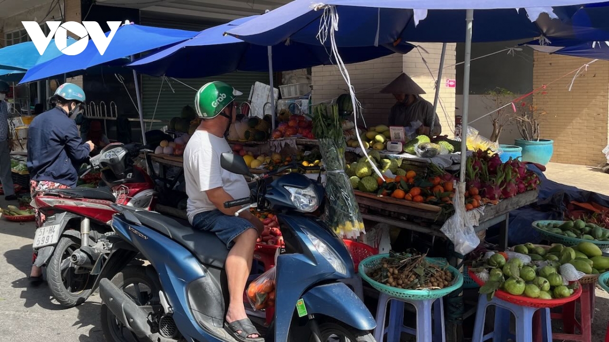 Tại chợ dân sinh Việt Lập (phường Dĩ An, thuộc tỉnh Bình Dương trước đây), các sạp rau xanh, trái cây, thịt cá.. đã mở bán nhưng lượng khách còn thưa thớt, không khí mua bán khá trầm lắng.