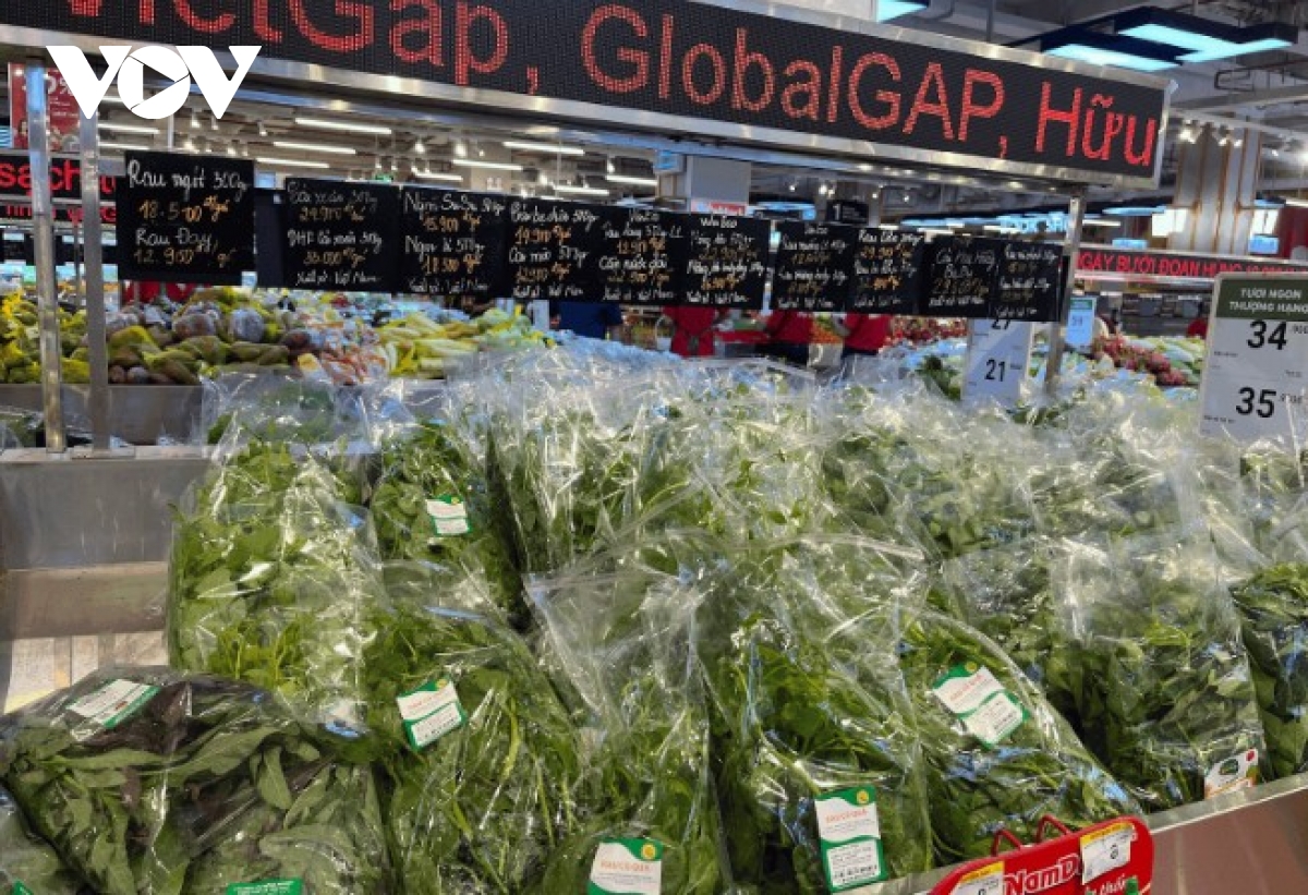Giá các loại rau như rau muống, rau cải tại siêu thị Winmart cũng tăng đáng kể