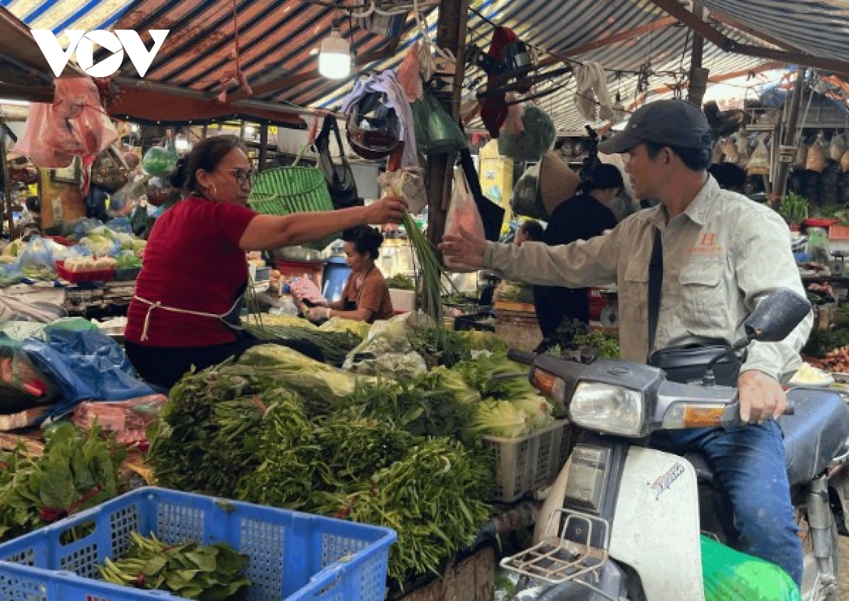 Sạp hàng rau tại chợ Nghĩa Tân