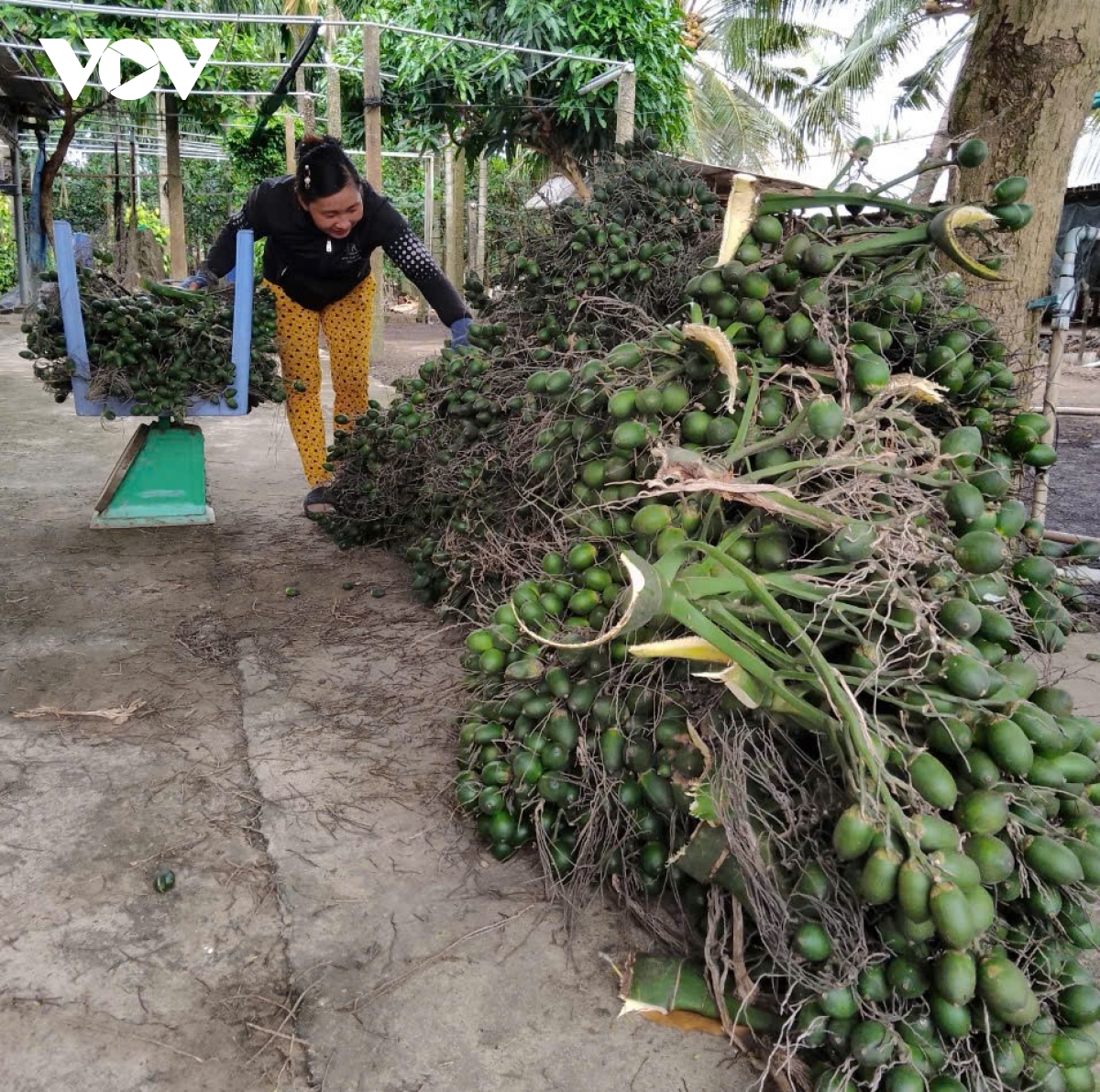 Gần đây, trái cau thương phải tại địa bàn tỉnh Tiền Giang giá tăng đột biến, người trồng loại cây này có nguồn thu đáng kể. Đây là loại cây dễ trồng, chi phí thấp, cho thu nhập quanh năm thích ứng với khô hạn và xuất khẩu mạnh sang thị trường Trung quốc nên nhà vườn đang nhân rộng trồng xen canh với các loại cây khác hay trồng bờ ranh.