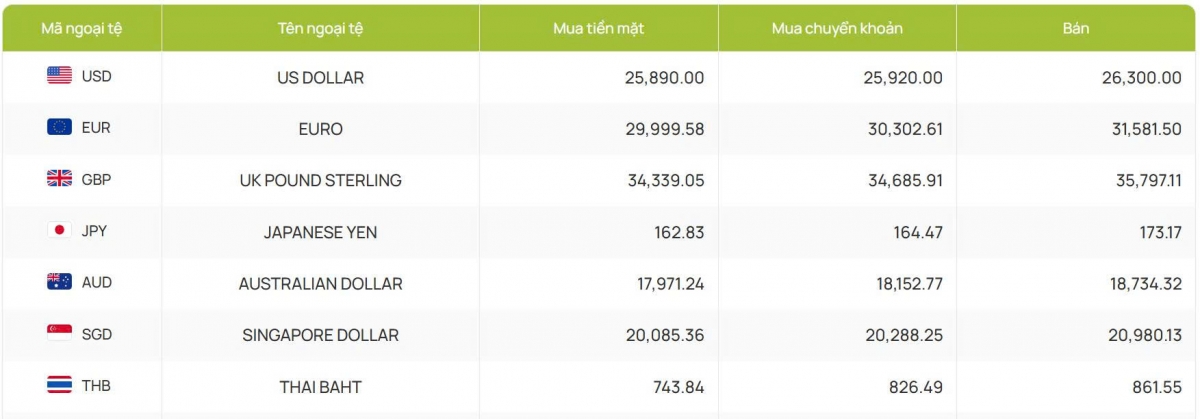 Còn ACB bắt đầu hôm nay giao dịch với 25.900 đồng/USD mua vào và 26.290 đồng/USD bán ra, cao hơn phiên trước 14 đồng cả hai chiều.