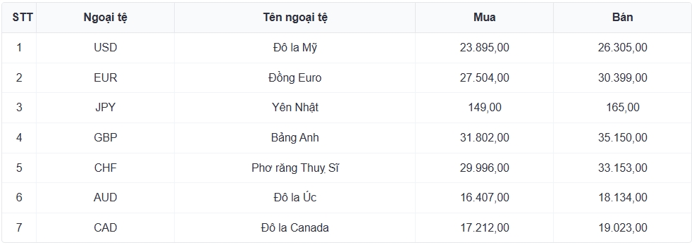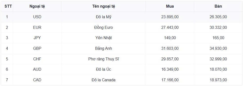Tỷ giá các ngoại tệ mạnh khác trong giỏ thanh toán quốc tế, tại Ngân hàng Vietcombank được niêm yết như sau: