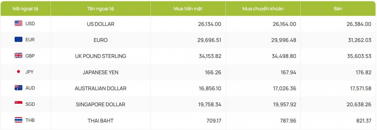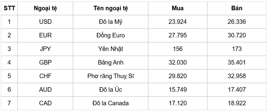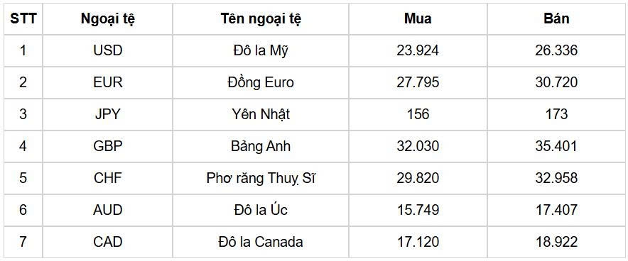 Tỷ giá các ngoại tệ mạnh khác trong giỏ thanh toán quốc tế, tại Ngân hàng Vietcombank được niêm yết như sau: