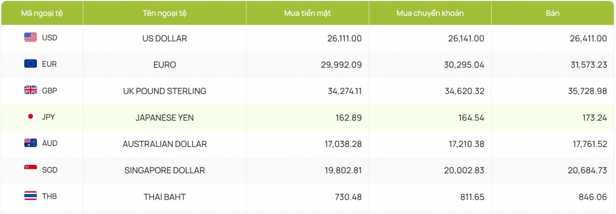 Còn ACB bắt đầu hôm nay với 26.110 đồng/USD mua vào và 26.405 đồng/USD bán ra, so với phiên trước đã giảm 40 đồng chiều mua và 6 đồng chiều bán.