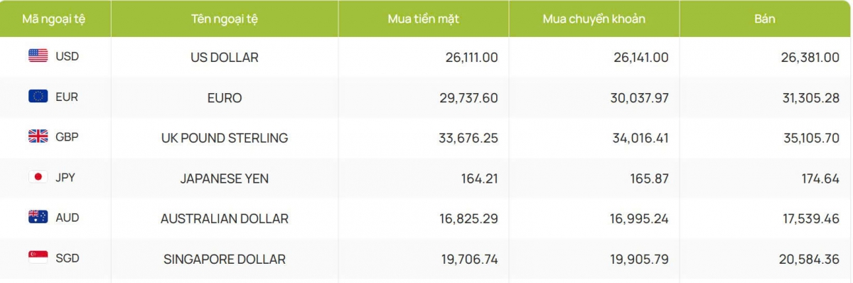 Cùng thời điểm, ACB hiện giao dịch với 26.140 đồng/USD mua vào và 26.381 đồng/USD bán ra, giữ nguyên giá mua còn giá bán đã hạ xuống thấp hơn phiên trước 4 đồng.