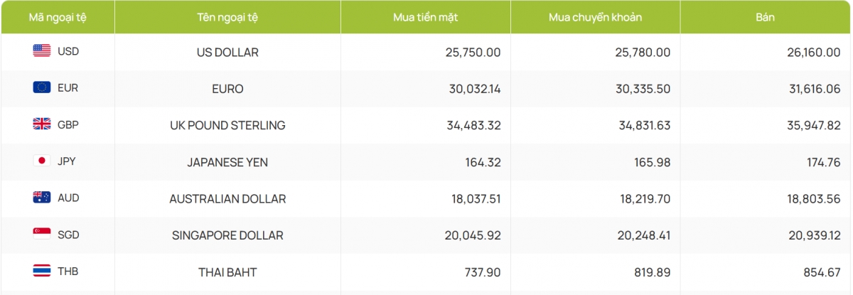 Còn ACB bắt đầu hôm nay giao dịch với 25.760 đồng/USD mua vào và 26.150 đồng/USD bán ra, giữ nguyên so với phiên trước.