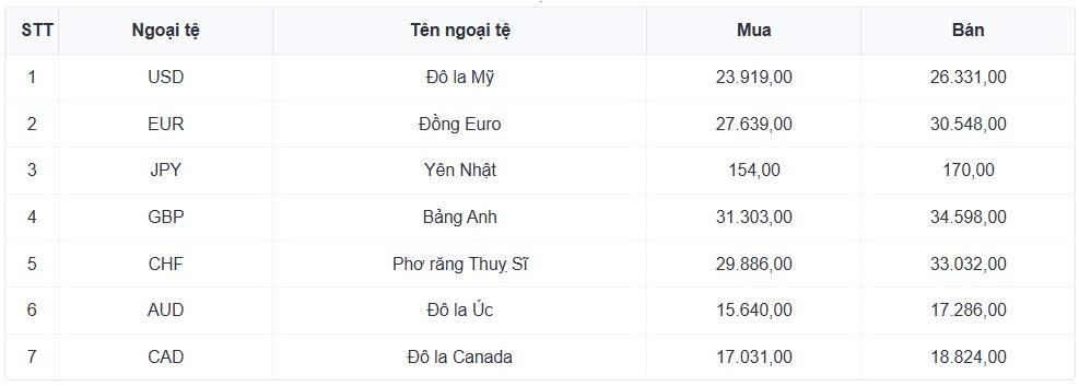 Tỷ giá các ngoại tệ mạnh khác trong giỏ thanh toán quốc tế, tại Ngân hàng Vietcombank được niêm yết như sau: